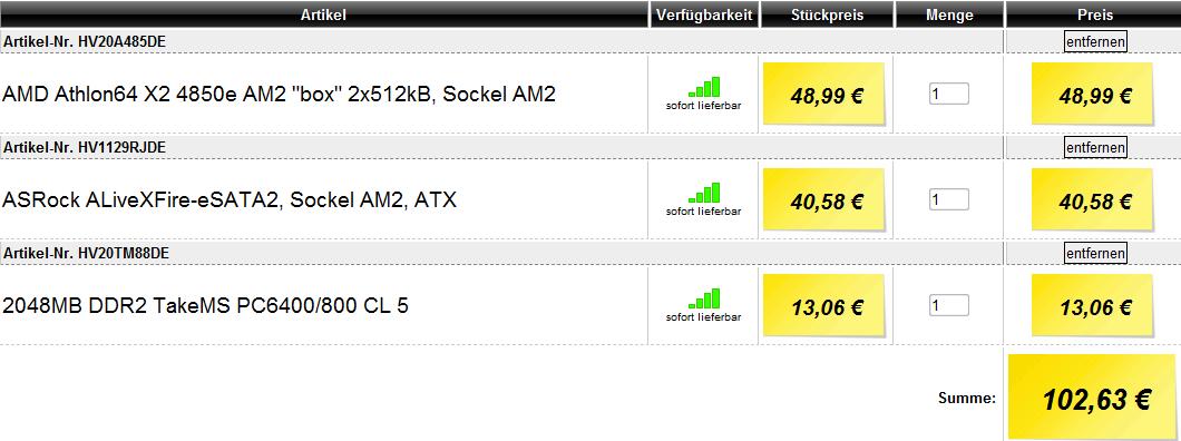 AMD Athlon 64 X2 4200+ EE 90nm, 2x 2.20GHz, tray 35 € http://geizhals.at/deutschland/a222729.html