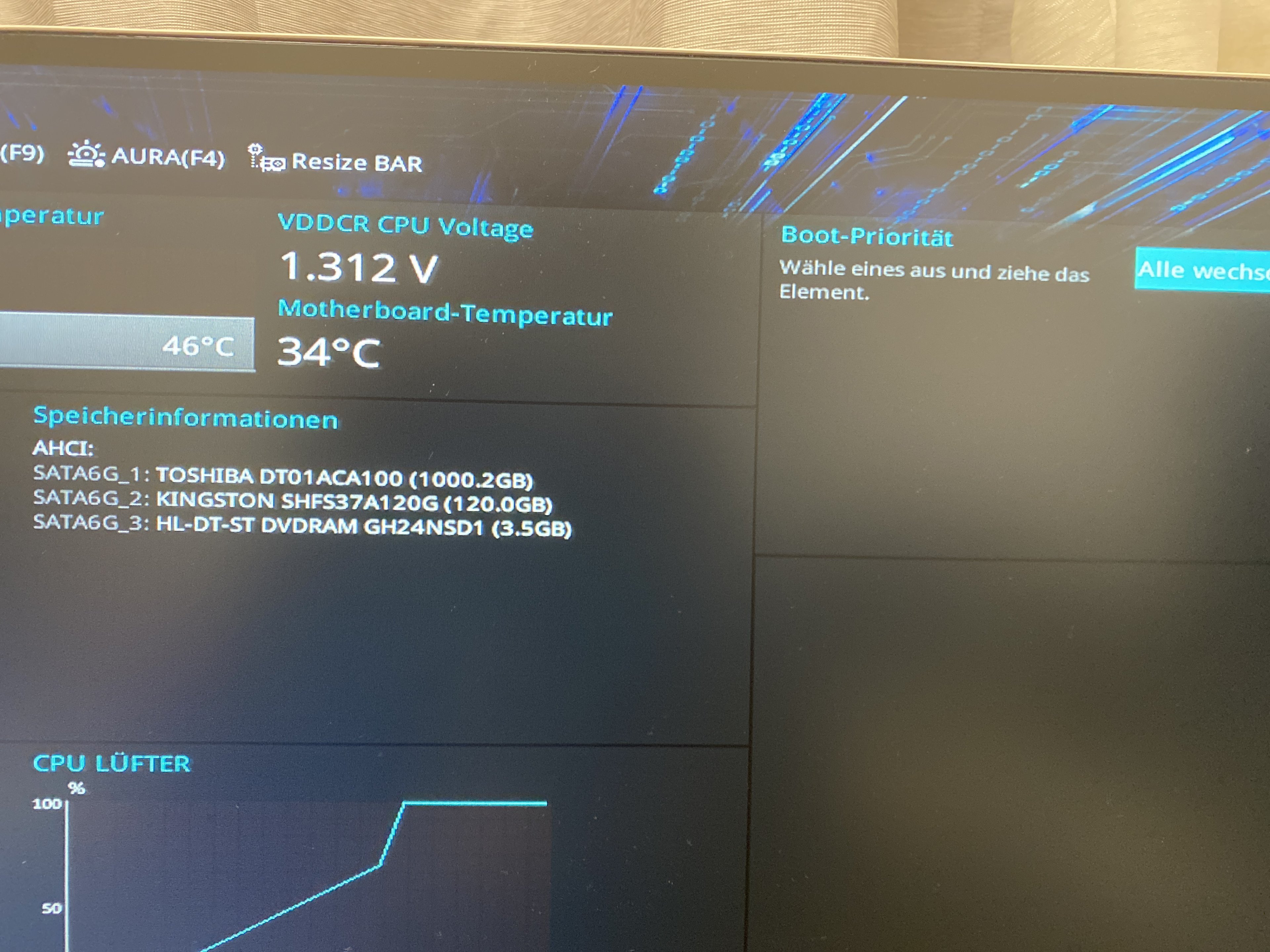 Also bei Art des Betriebssystems hatte ich „anderes Betriebssystem“ ausgewählt gehabt. Hab ich jetzt auf „Windows UEFI-Modus“ gestellt.bisy schrieb:Steht sicherlich im UEFI oben rechts auf der Hauptseite