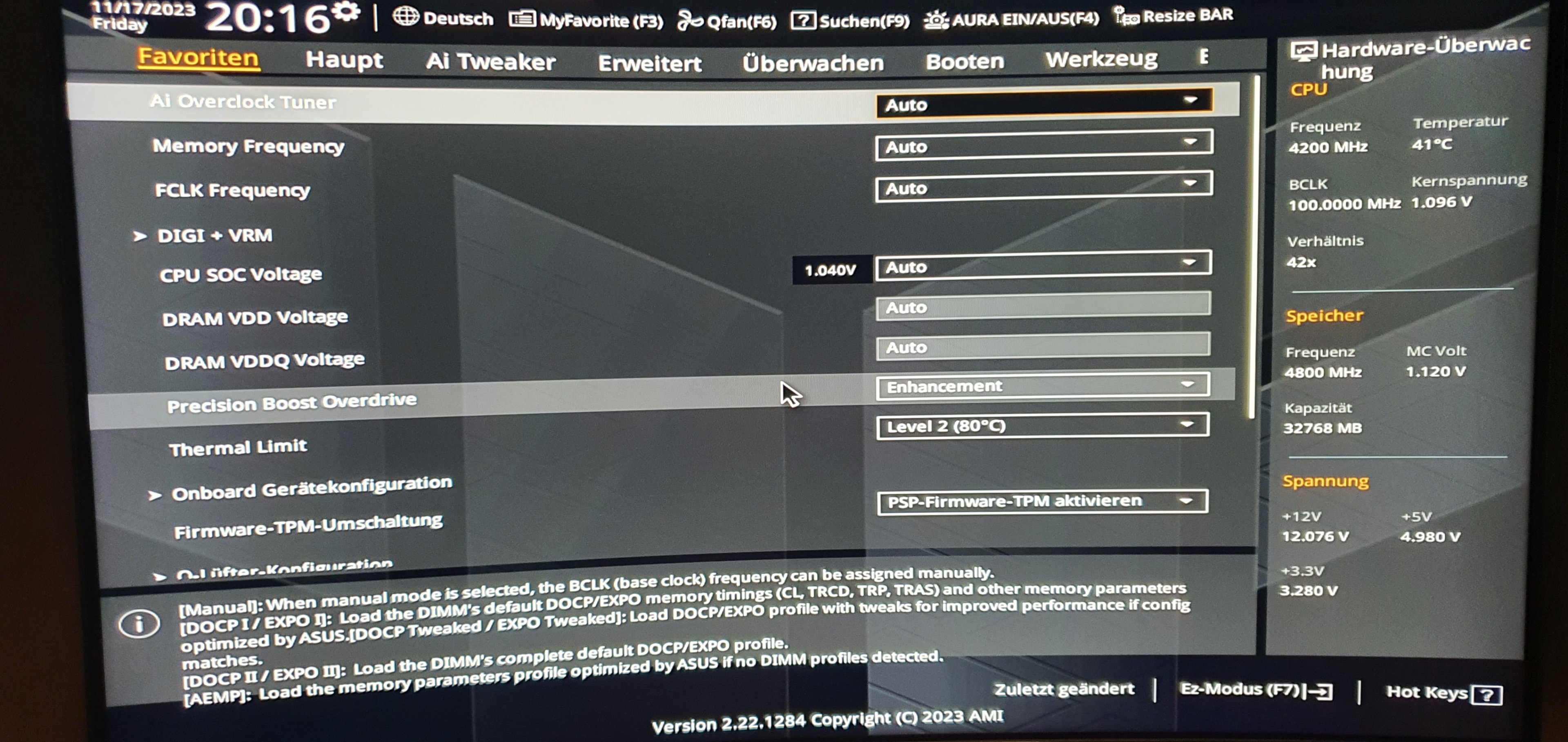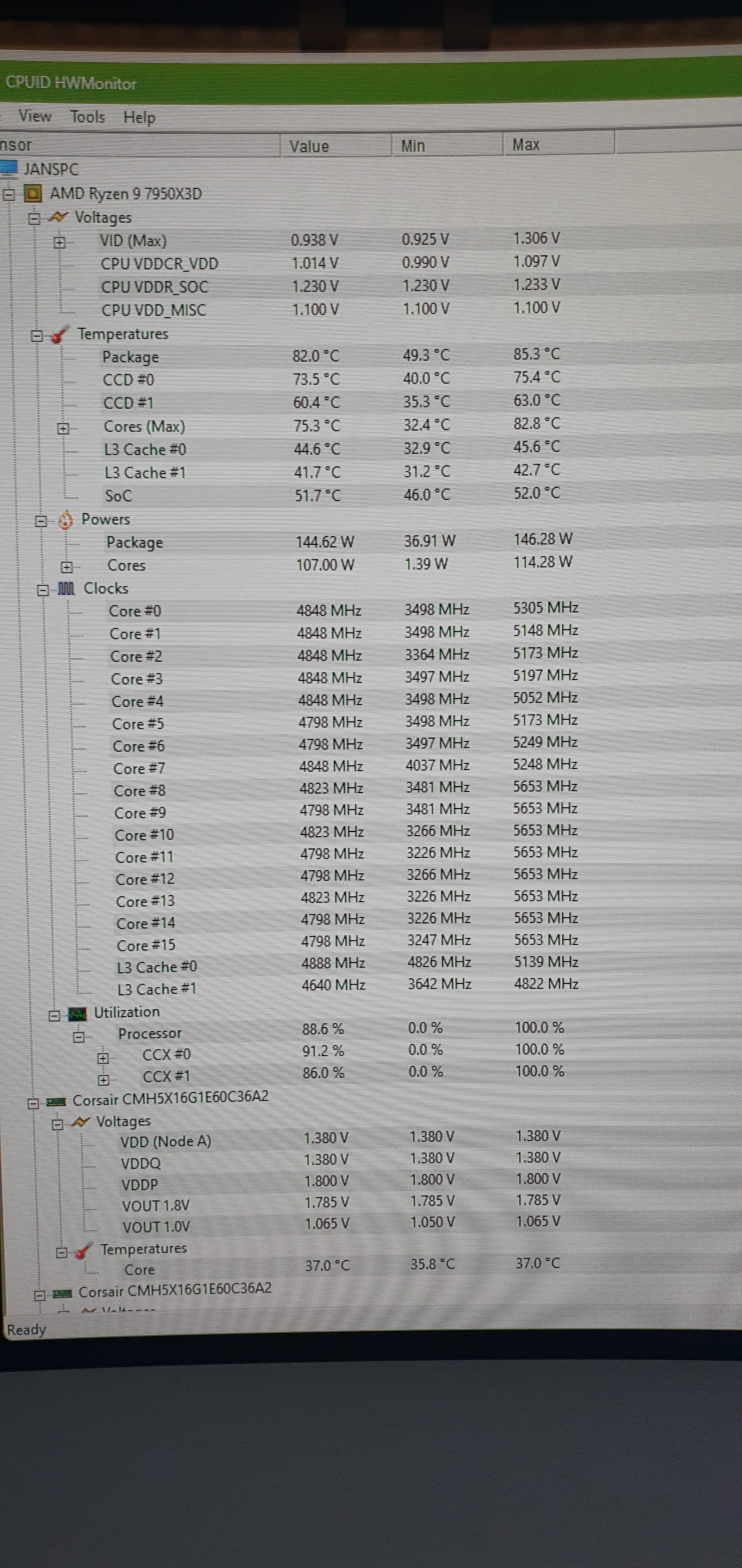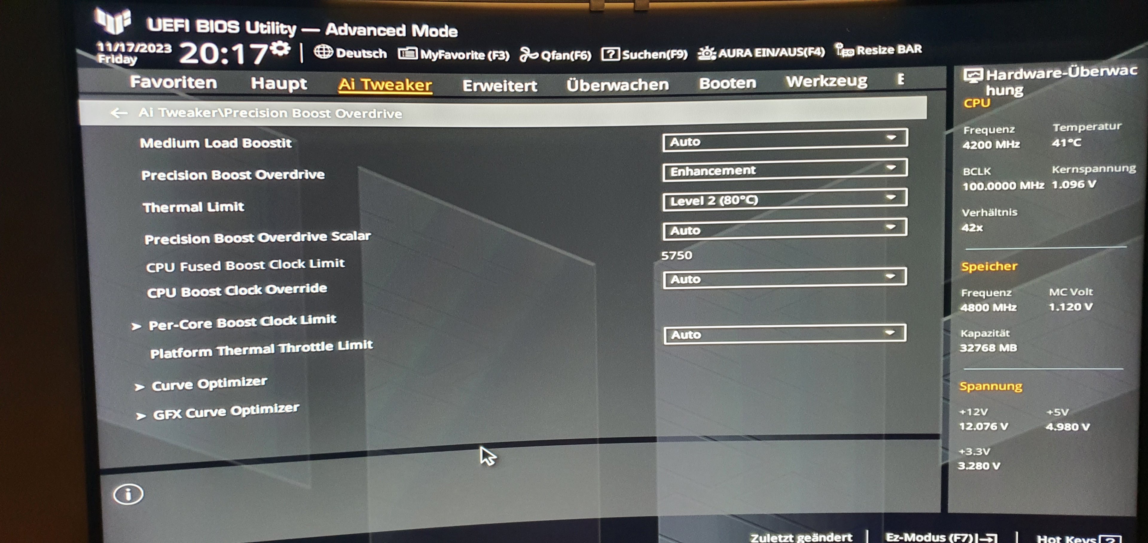 Ich mache Fotos. Aber sag doch mal - auf dem Screenshot siehst du doch die 144 Watt - ist das denn nicht zu wenig ? Sollte er nicht 165 ziehen ?Tornavida schrieb:Ich würde vorschlagen ,dass du alle relevanten Seiten vom Bios mal postest damit es weitergehen kann. Bei deinem Screenshot ist ausser den Taktraten nix zu sehen wo es viel mehr zu sehen gäbe. Wenigstens erkennt man, dass du anscheinend CL 36 ram hast (was in den Eröffnungspost gehört). Also bisschen mehr Mühe musst du dir schon geben.