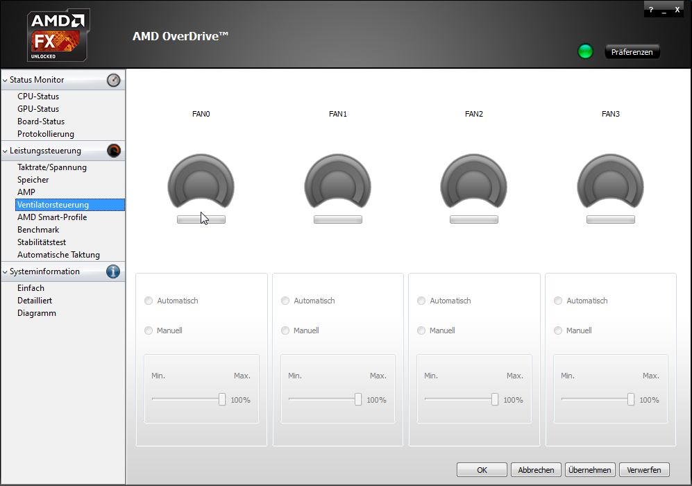 Ich würde gerne Amd Overdrive benutzen doch dort werden mir keine Lüfter angezeigt (Screenshot 1).