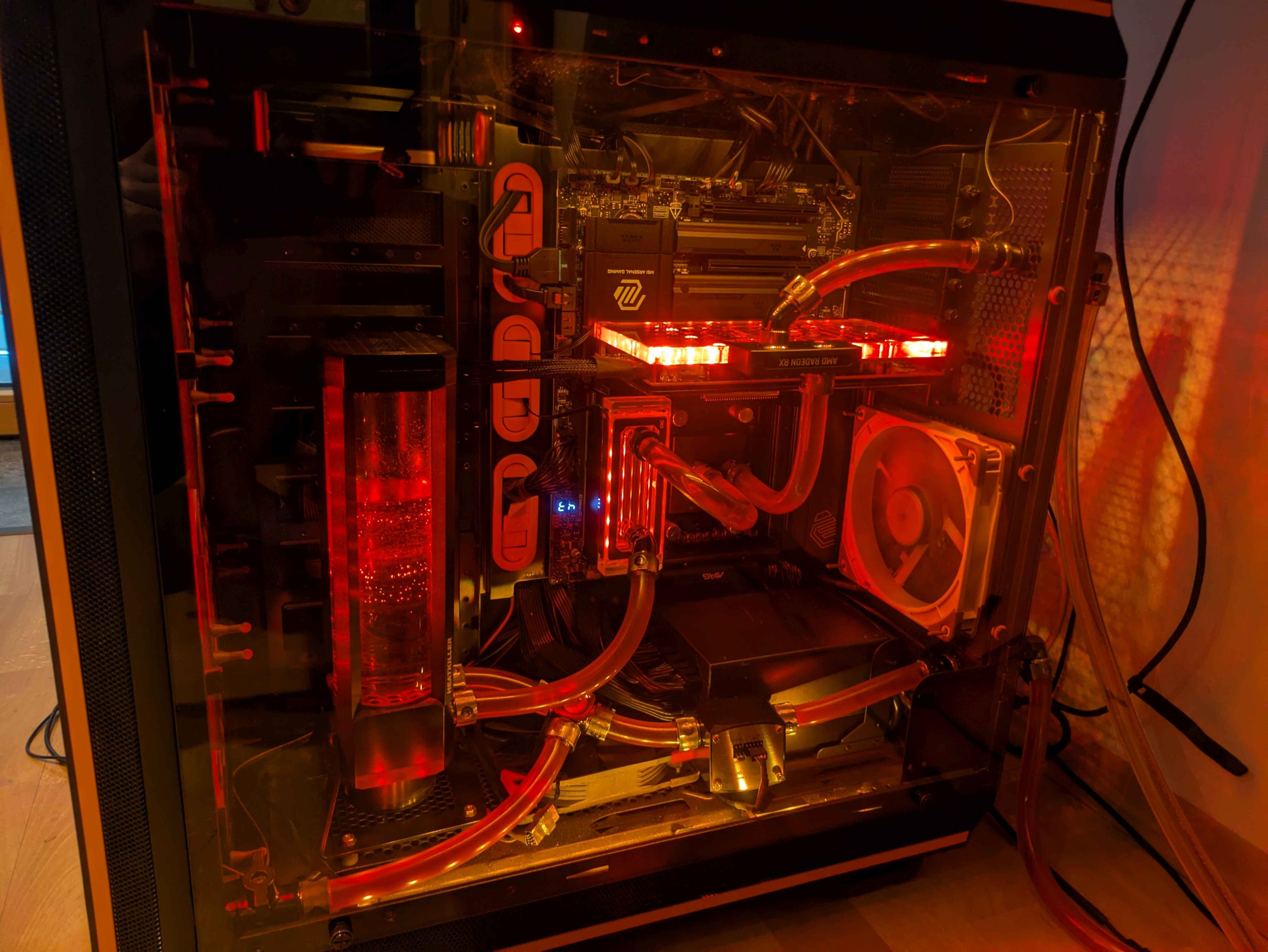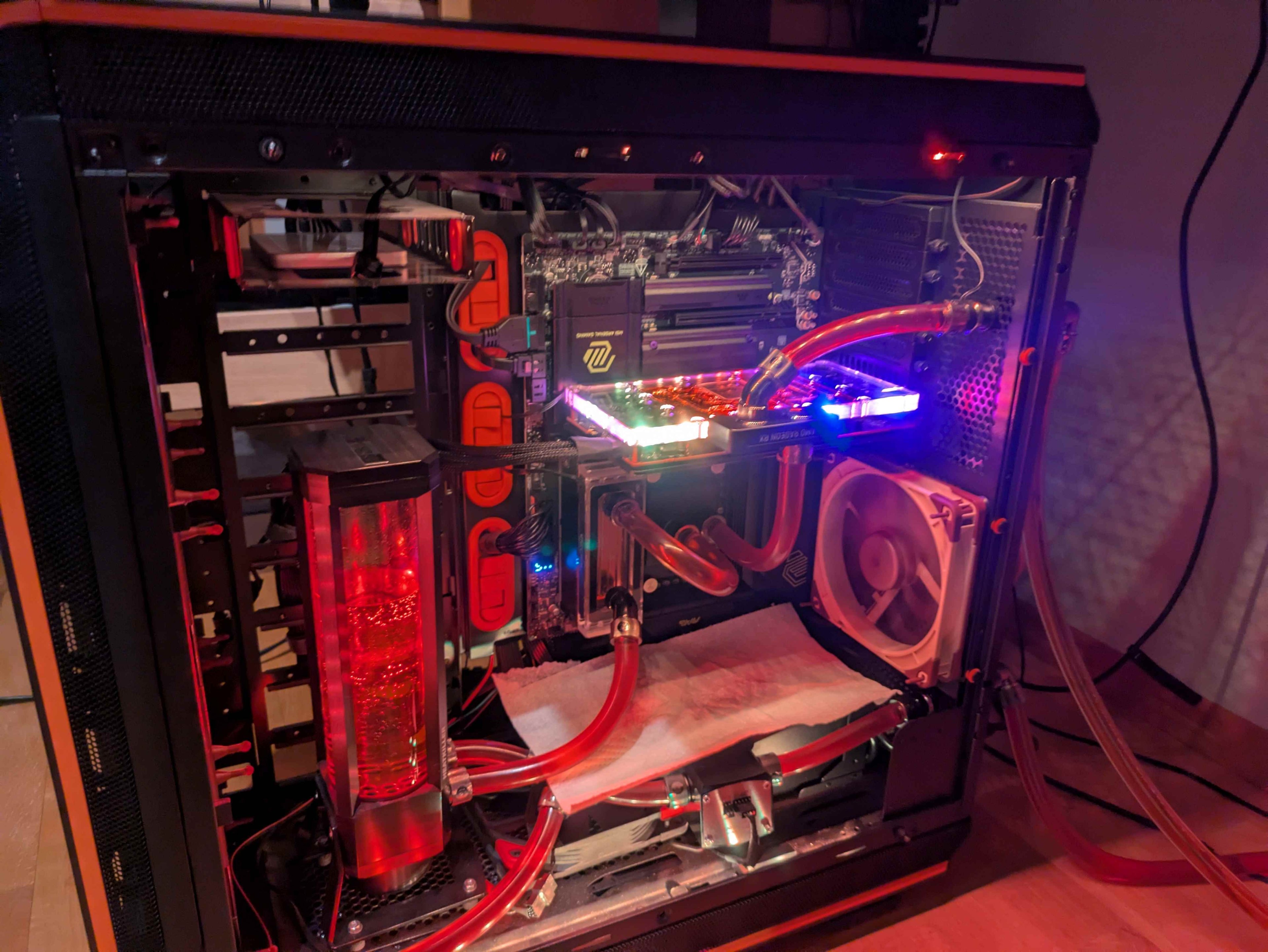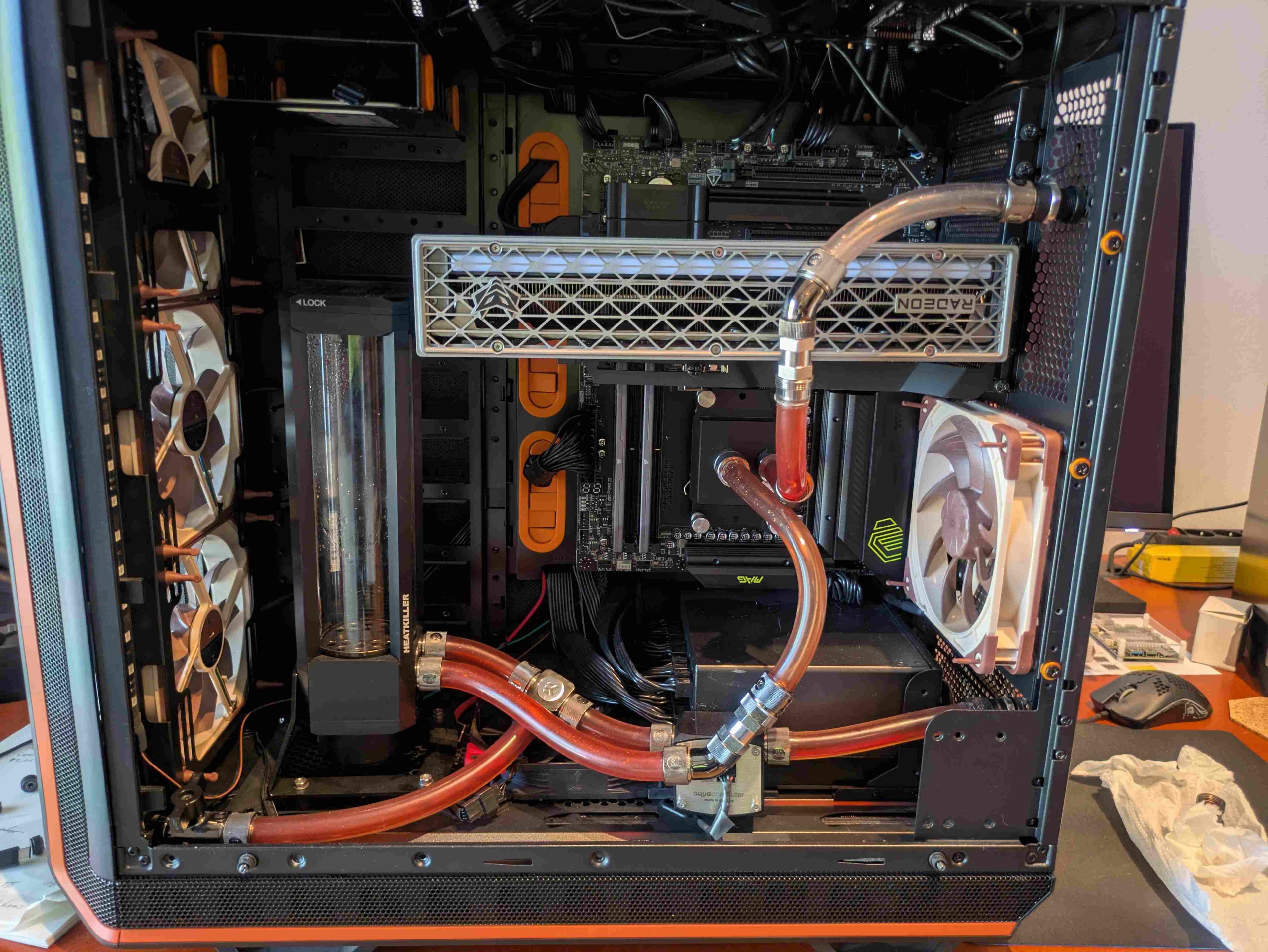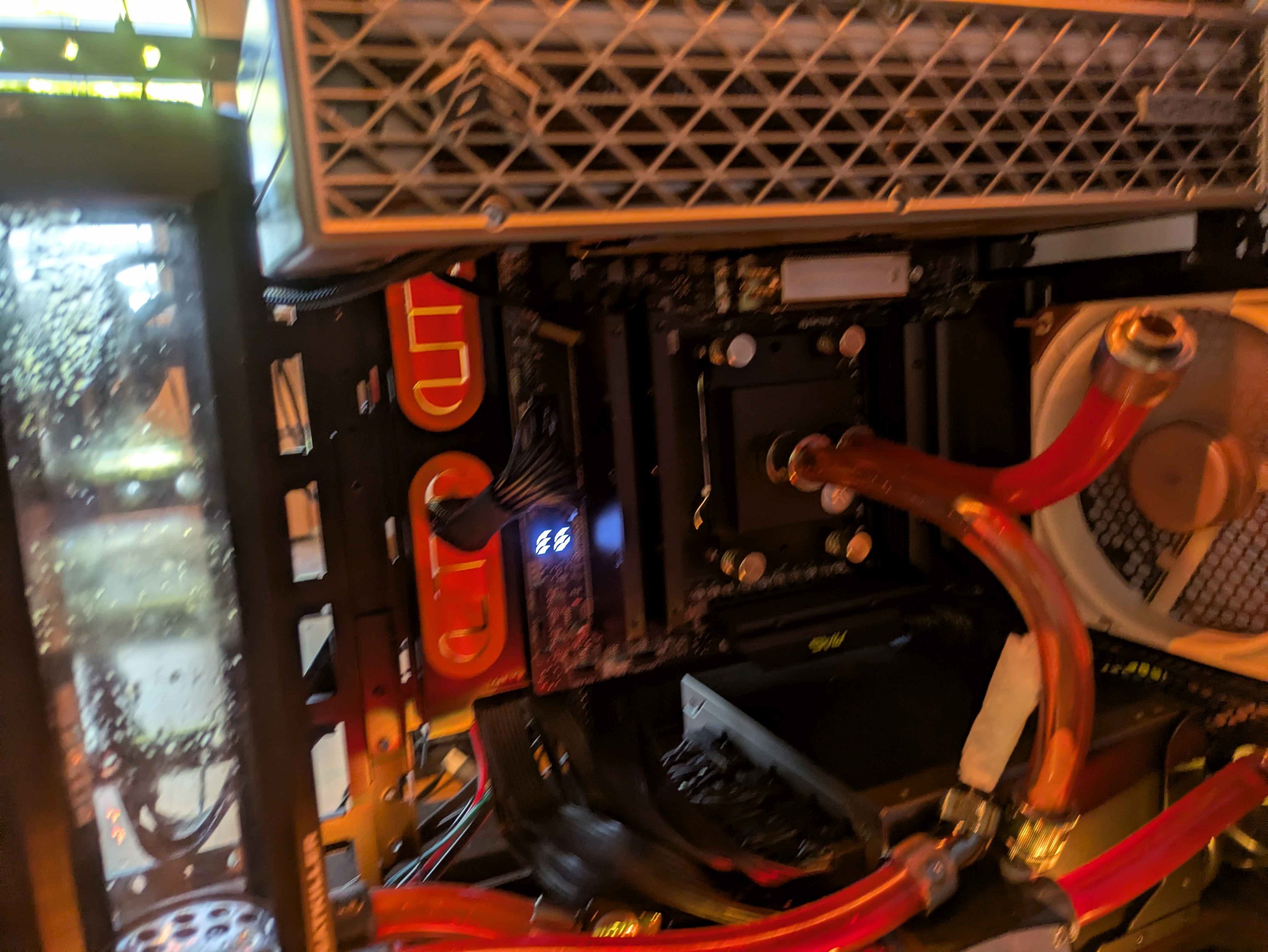 CPU Temperaturen sind auch etwas hoch dafür das sie Wassergekühlt ist. Man sieht immer wieder mal 85-88°C, aber dafür hab ich konstant 5225MHz auf allen Kernen. Also von der Leistung sollte es passen. Liegt wahrscheinlich an dem alten AM4 Kühler das er die Wärme zu weit Mittig abführt.
