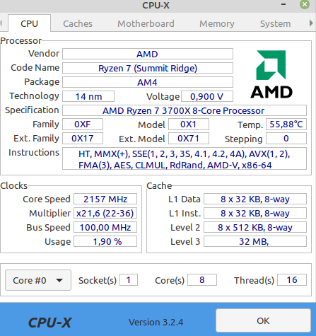 CPU Ryzen 3700x