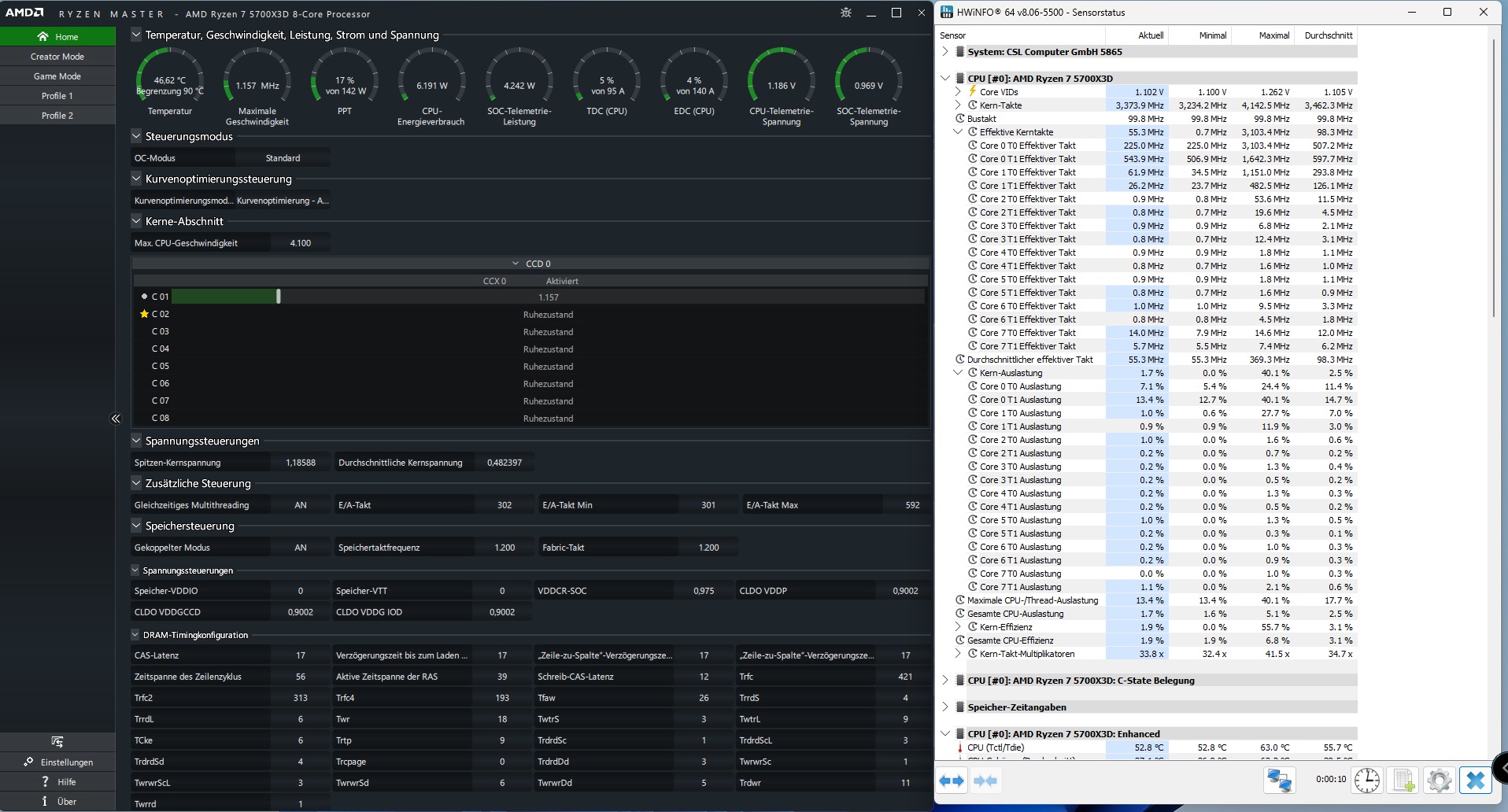 Natürlich habe ich direkt einige andere Programme zum Auslesen gesucht und alle sind sich einig, außer der Ryzen Master.