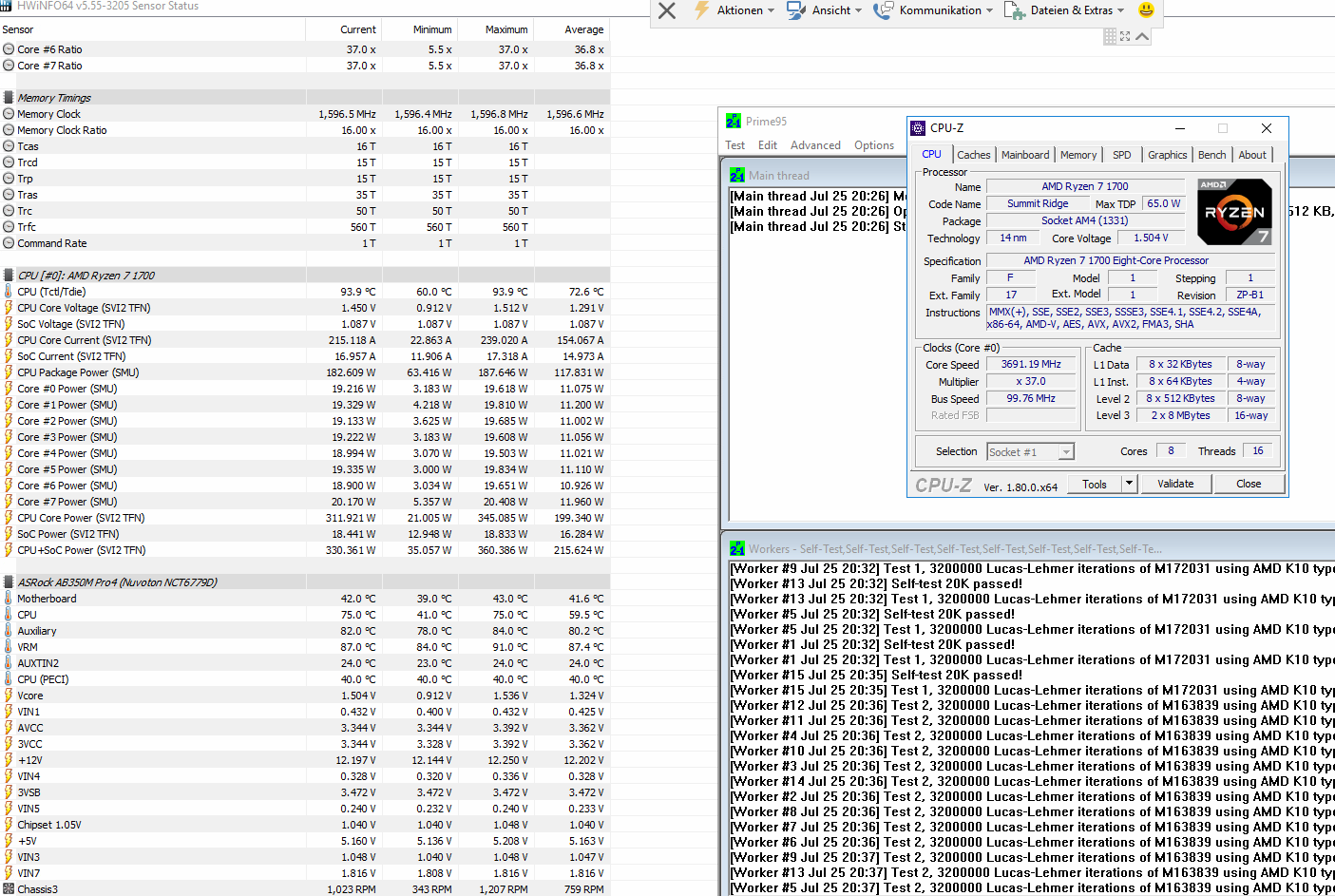 CPU zieht dabei etwa 150W. Auch rennt diese noch bei 95°C stabil, man muss nicht zwingend 80 und weniger haben. Ich kann bis 350W mit der CPU provozieren (>1,5V), da throttelt dann aber das Board.
