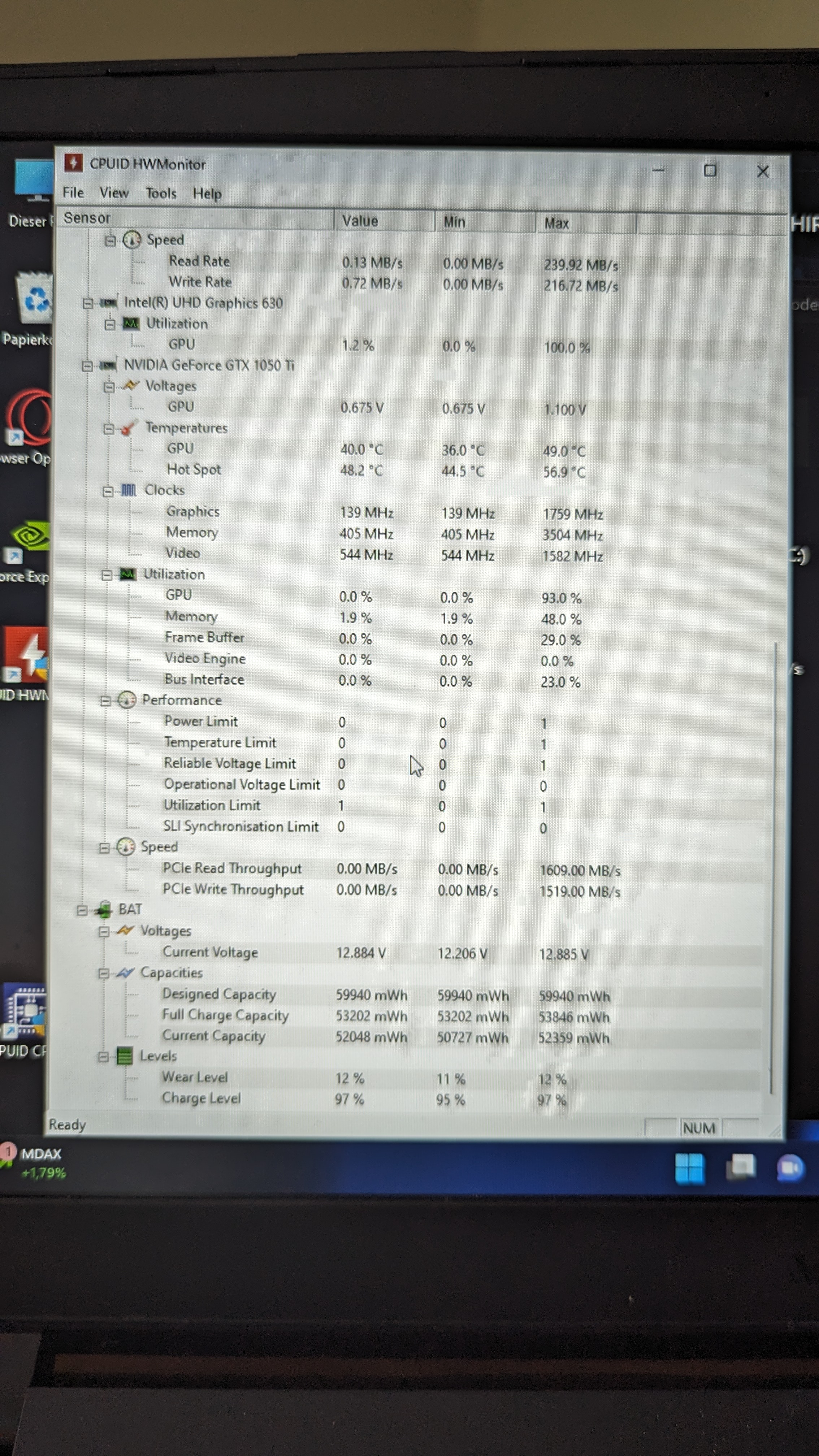 Ich habe ein Problem mit meinem Laptop. Die Cpu läuft mit 2,20Ghz sobald ich das Ladekabel anschließe taktet sie hoch auf 3,90Ghz und hier das Problem: sobald ich ein Spiel starte taktet sie runter auf 0,4Ghz und alles laggt dann. Spiele die eher Gpu leistung benötigen liefen beim laden auch gut wie z.B. Sea of Thieves und Horizon zero dawn (ohne Ladekabel liefen sie aber noch besser). Age of Empires aber z.B. läuft mit Ladekabel so gut wie garnicht. Ich wollte im Bios nachgucken und hab gesehen das es dort kaum Einstellungen gibt. Konnte an der Cpu nix machen also wollte ich es Updaten aber ich finde die datei dafür nicht. Ich hab bemerkt das ein Spiel im Fenstermodus besser läuft auch wenn nicht so gut wie ohne Ladekabel.