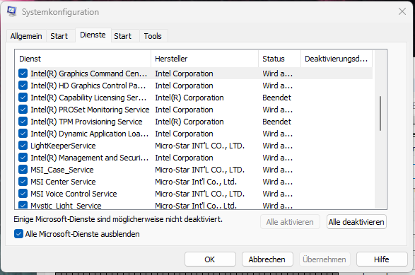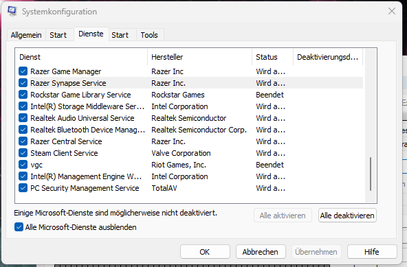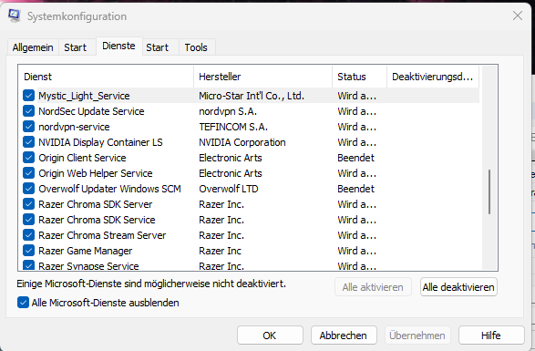 Ausführen: msconfig - Reiter "Dienste" - Alle Microsoft-Dienste ausblenden ?