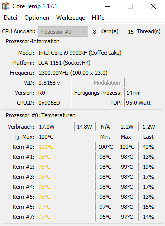 - Prozessor (CPU): I9 9900KF