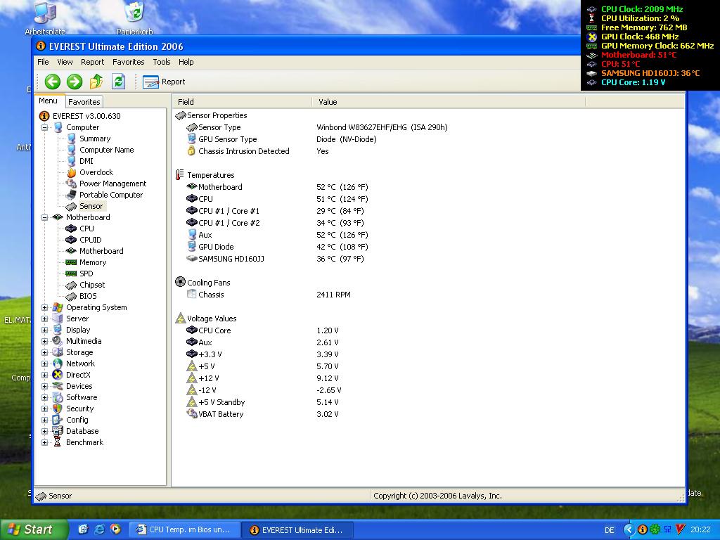 is bei mir aber das gleiche Problem. In Speedfan / Everest / BIOS werden mir komische Temps angezeigt: