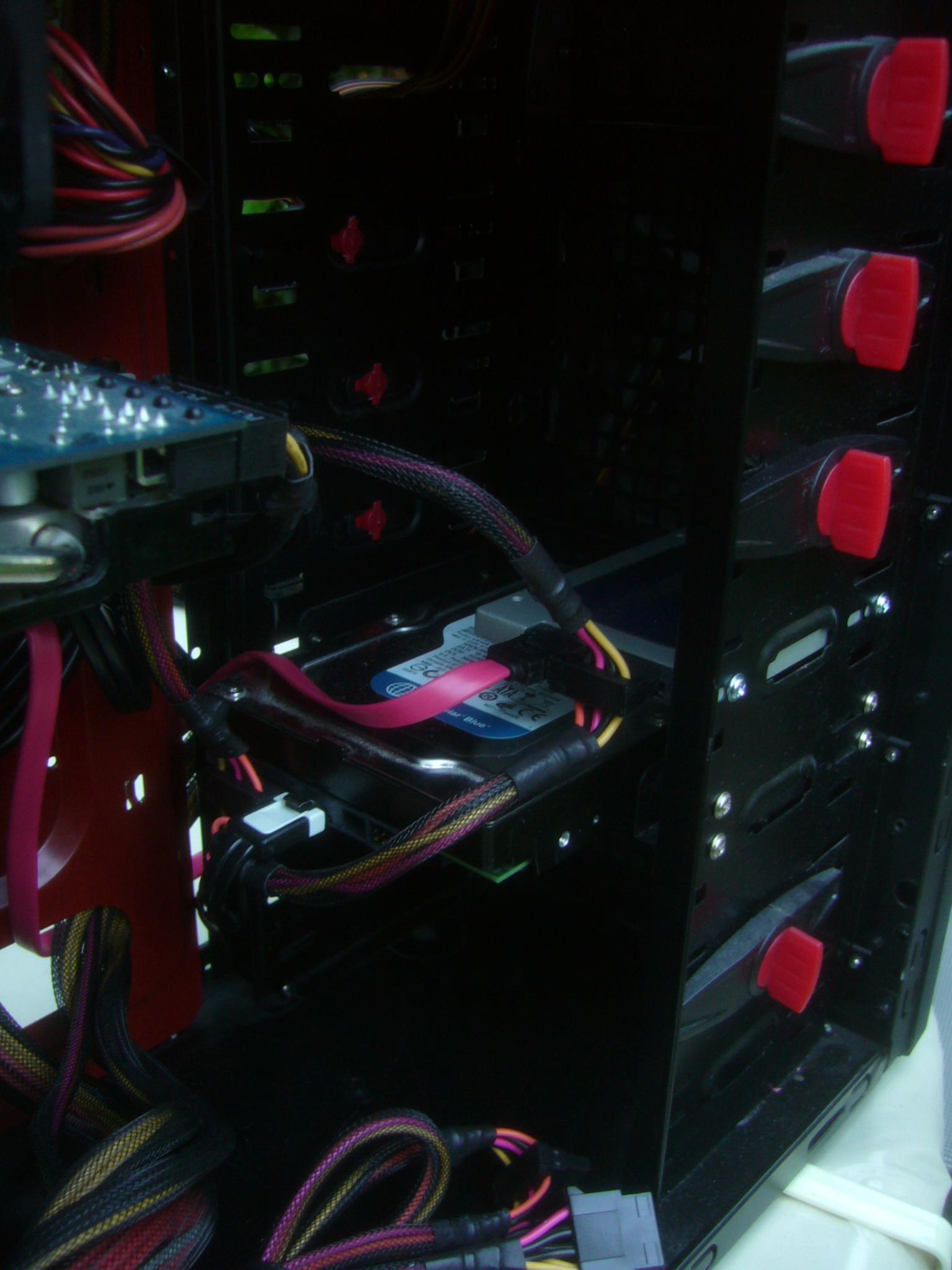Es hat ziemlich lang gedautert, einen Weg zu finden, lediglich einen Strang für die Laufwerke und die Lüftersteuerung zu verwenden. Deswegen ist der Strang zwischen der HDD und der SSD ziemlich straff gespannt, wie auf Bild 2 zu sehen. Ist das ein Problem? Schadet den Kabeln eigentlich häufiges Ein- und Ausstecken, was beim Rumprobieren nötig ist?