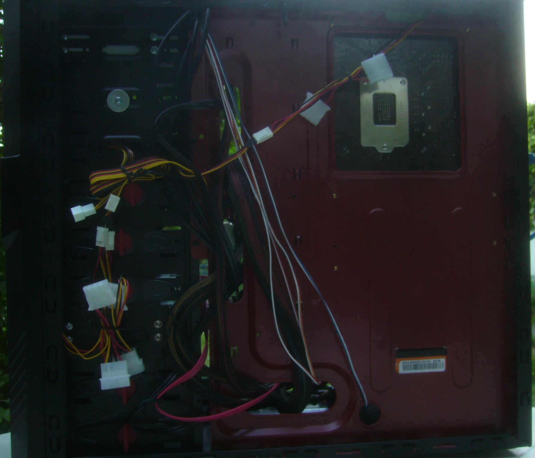 Der zusammengebundene Strang neben dem NT ging leider nicht hinter das Mainboard, weil da bis zur Gehäuseseitenwand nicht genügend Platz für die Stecker vorhanden ist.