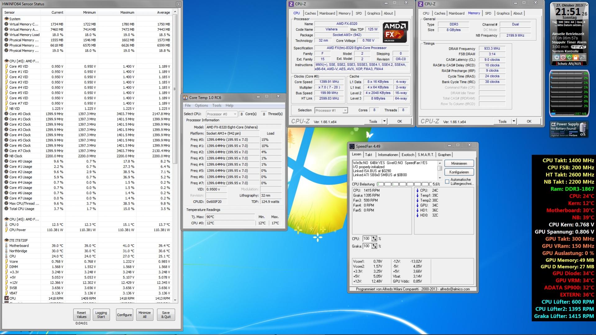 CPU: AMD FX 8350 Octa-Core Prozessor (4GHz, Socket AM3+, 16MB Cache, 125 Watt)
