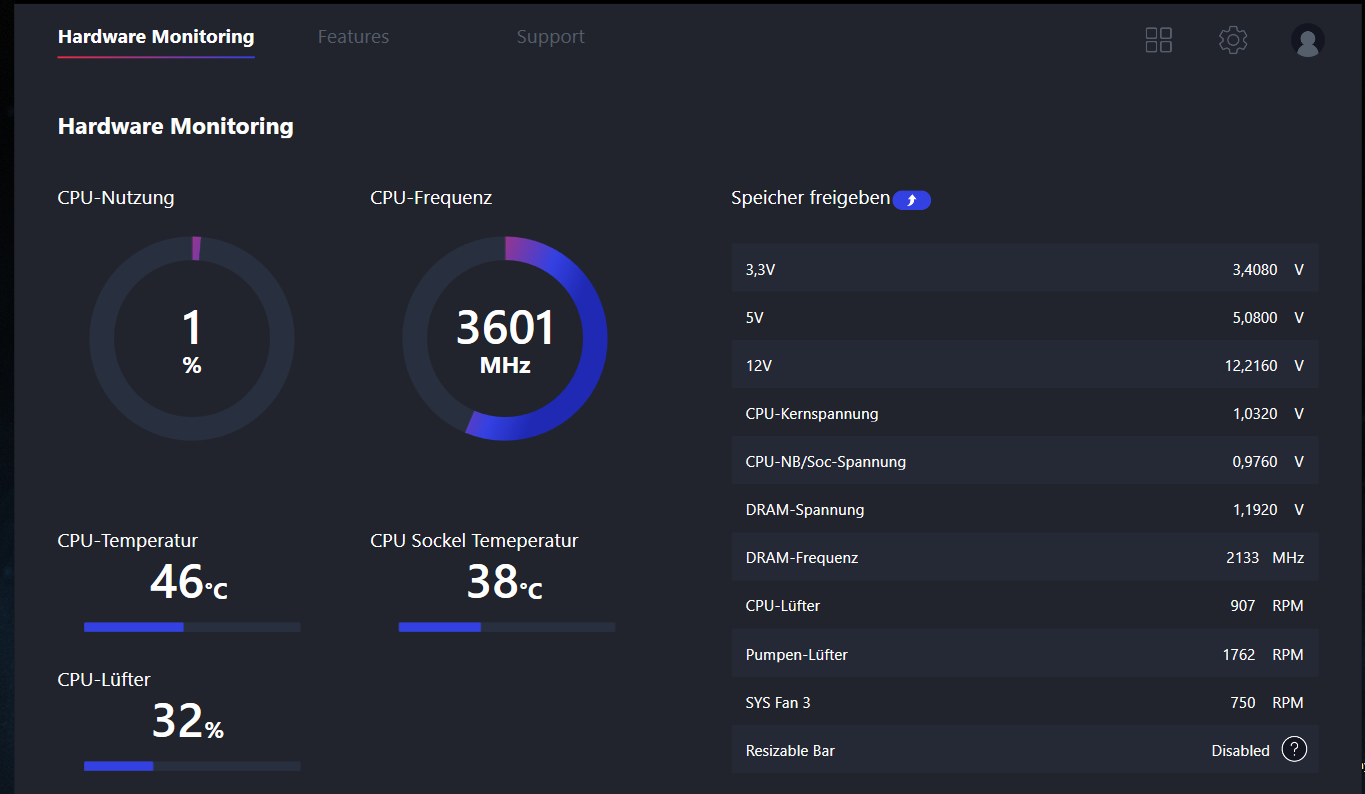 Ich habe Gestern ein neues Mainboard, neue CPU und eine AIO Kühlung bekommen ( Board B550M Pro VDH Wifi, AMD Ryzen 5 5600x, Mastercool ML240R RGB) ich habe alles verbaut und den PC gestartet soweit alles in bester Ordnung, jedoch hab ich dann gemerkt das die Lüfter recht hoch laufen im Zuge dessen habe ich dann die Lüfter übers Bios angepasst und es schien auch alles in Ordnung jetzt habe ich nur folgendes Problem, im Idle befindet sich aktuell die CPU nutzung auf 1-3% die Temperatur 42-52°C und die Lüfter auf 32% ( 900RPM die Lüfter für den Kühlkörper, 1700RPM für die Pumpe, 700 RPM system Fan) scheint ja soweit meines erachtens auch in Ordnung und leise. Jedoch sobald ich nur z.B CoD Black Ops starte geht das ganze sofort auf an die 70-80 Grad und die Lüfter hören sich an wie Düsenjet´s. Die Pumpe scheint richtig auf der CPU zu sitzen und ist dort auch fest verbaut die WLP habe ich aufgetragen und verstrichen. Ich möchte nur das alles gut läuft und ich auch beim Gamen mein eigenes Wort verstehe ohne Schreien zu müssen. Ich kenn mich nicht allzu gut aus und hoffe ihr könnt mir ein wenig bei meinem Problem helfen.