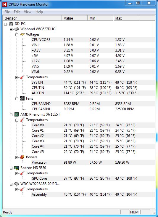 Auf meinem ASRock 880G Extreme3 werkelt ein AMD X6 1055T und ich erhalte mit dem ASRock OC Tuner und z. B. Hardware Monitor/SIW etc. unterschiedliche Werte, siehe Bilder.