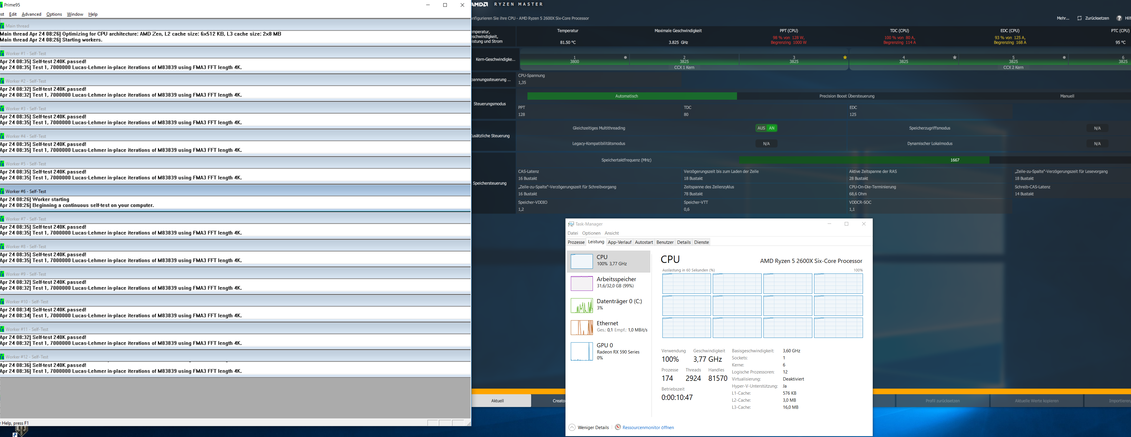 Ich weiß das Case is nich der hammer… aber es sollte doch ohne das die GPU läuft andere Temps kommen. Hier mal ein Bild von Ryzen Master nach ein paar Minuten Prime.