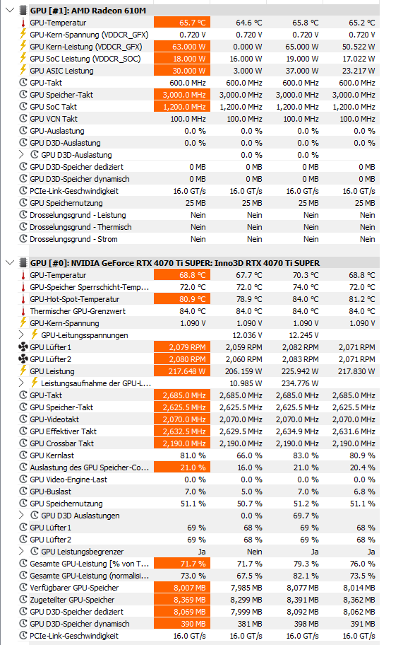 max 83grad ist doch gut. im geschlossenen gehäuse.