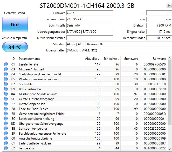 Ich hab jetzt den Datenträger komplett neu formatiert und jetzt zeigt mir CrystalDisk-Info auch keine schwebenden und beschädigten Sektoren mehr an. Wie stehen die Chancen dass die Festplatte jetzt erstmal wieder funktioniert und soll ich das mit "Seatools" trotzdem nochmal checken?