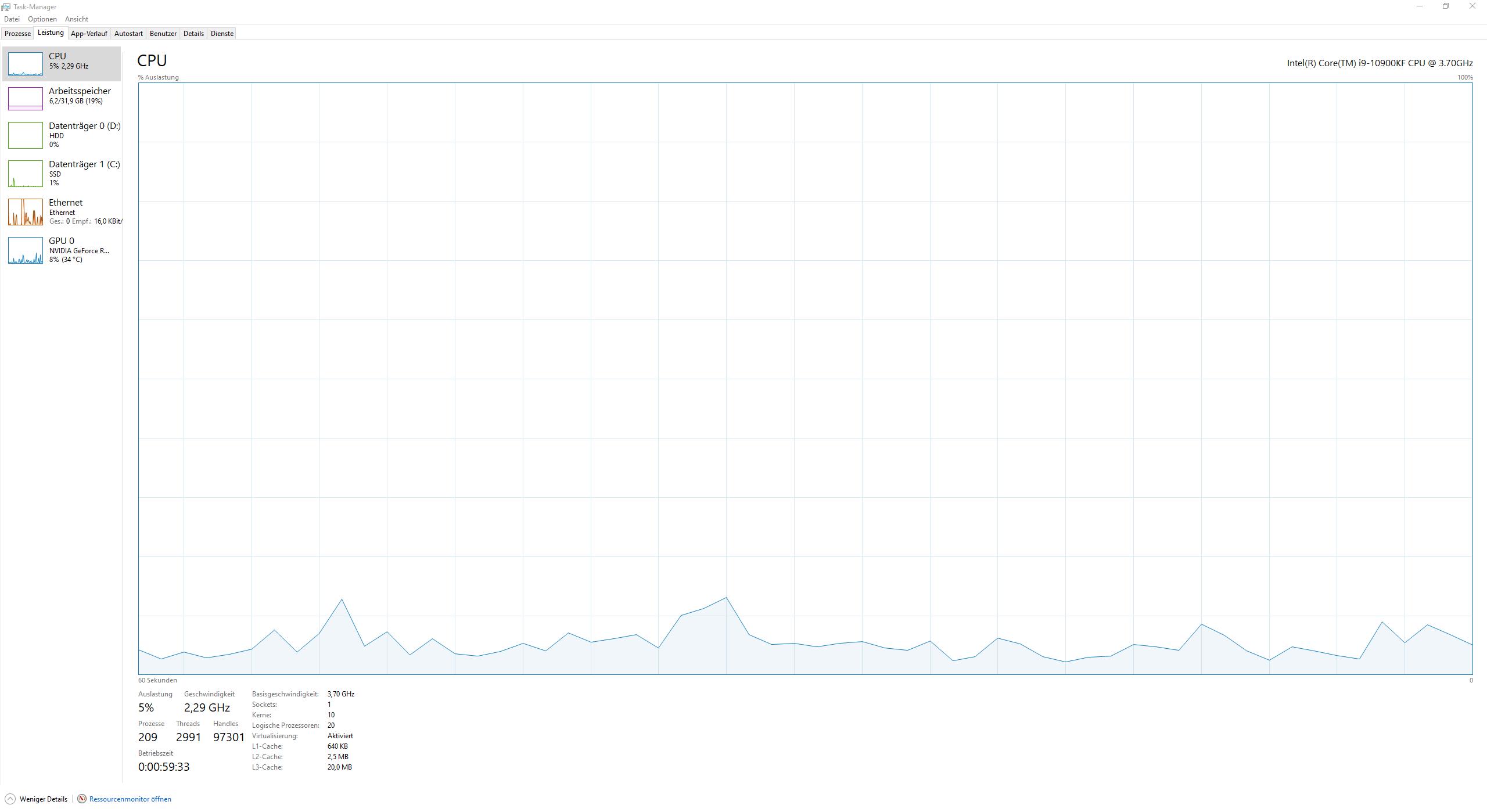 - Prozessor (CPU): Intel i9-10900KF 3,7Ghz