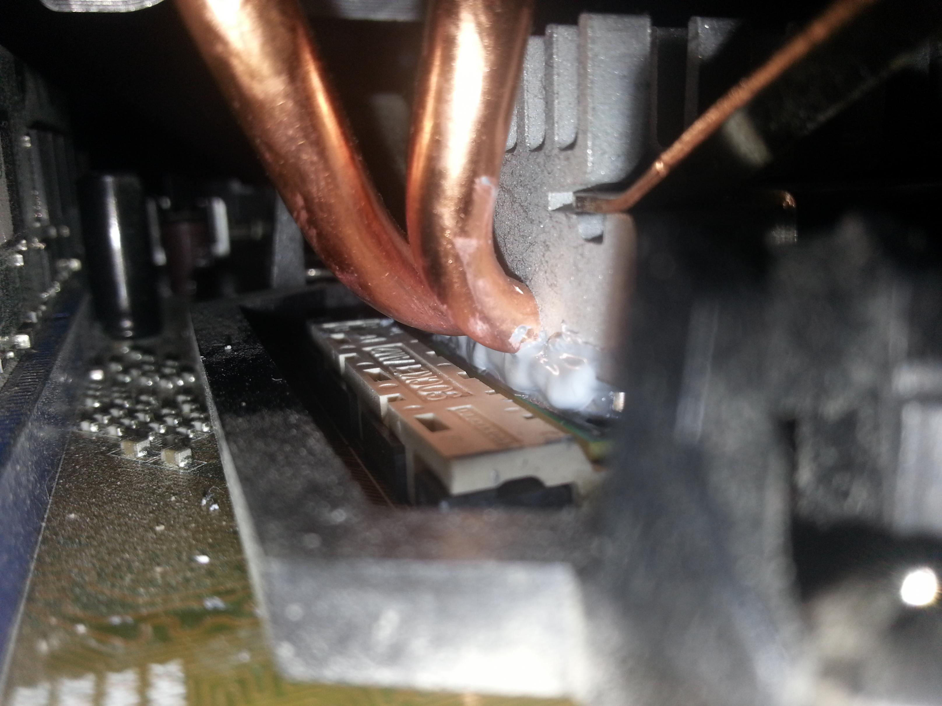 Jammi! Zu viel Paste und der Anpressdruck viel zu lasch: Falsch montiert.