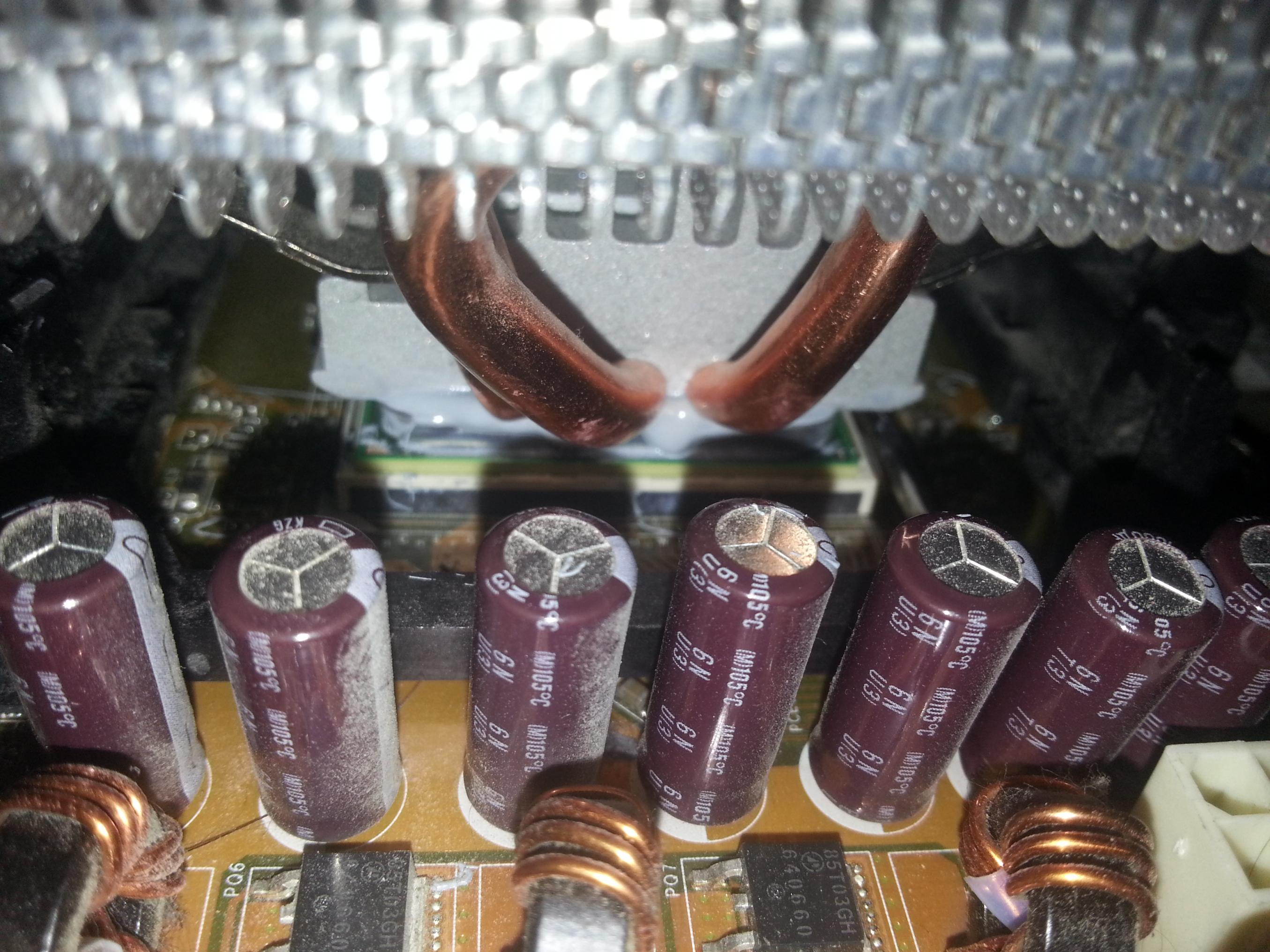 Man sieht beim ersten Bild recht gut, die schicht " Mörtel " zwischen Kühler und CPU.