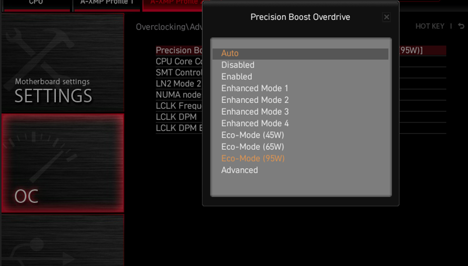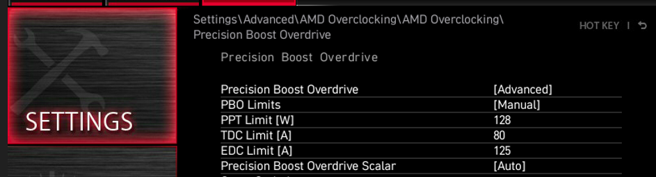 Das findest du wenn du bei Precision Boost Overdrive auf Advanced stelles und PBO Limits auf Manual.