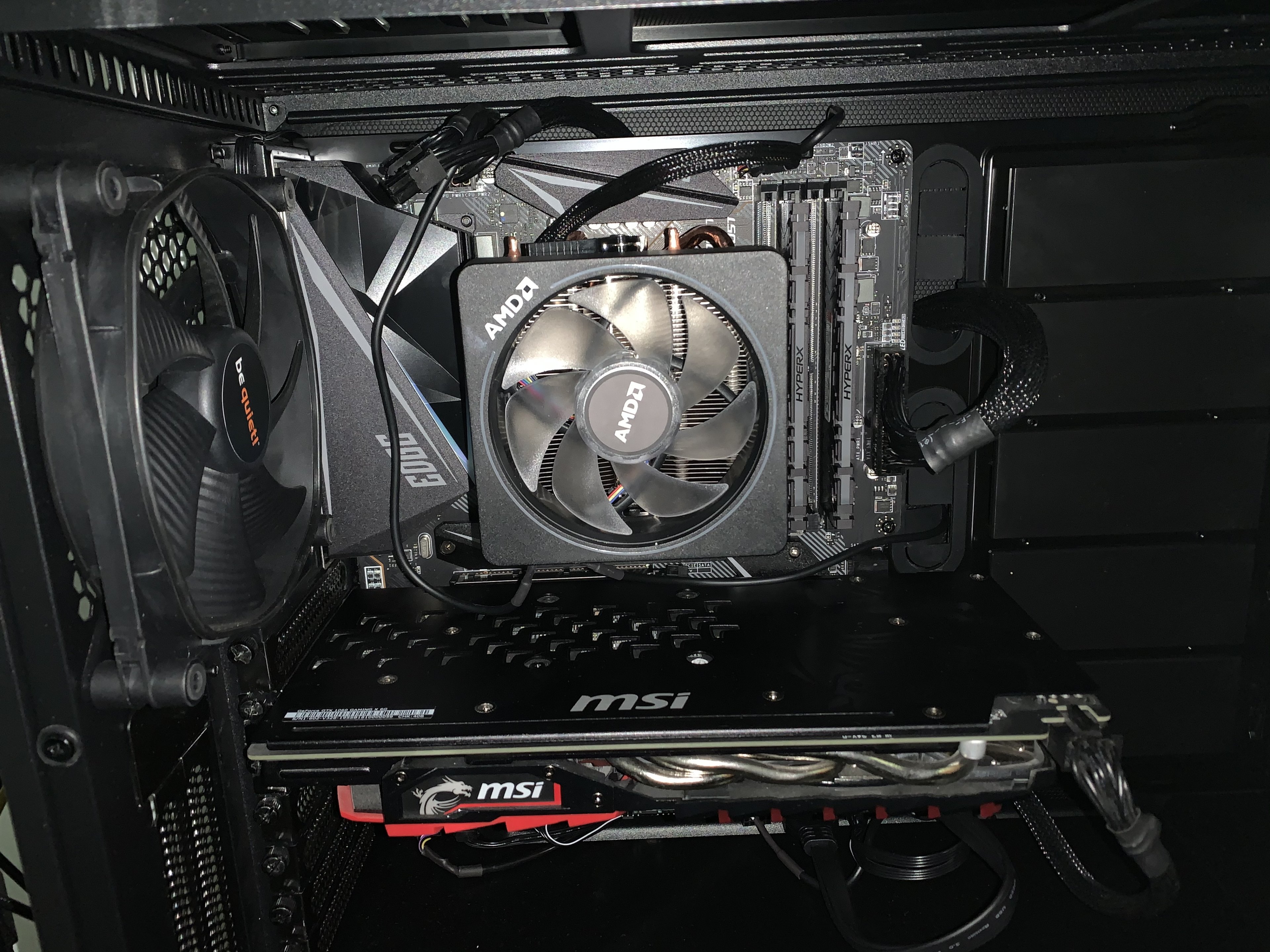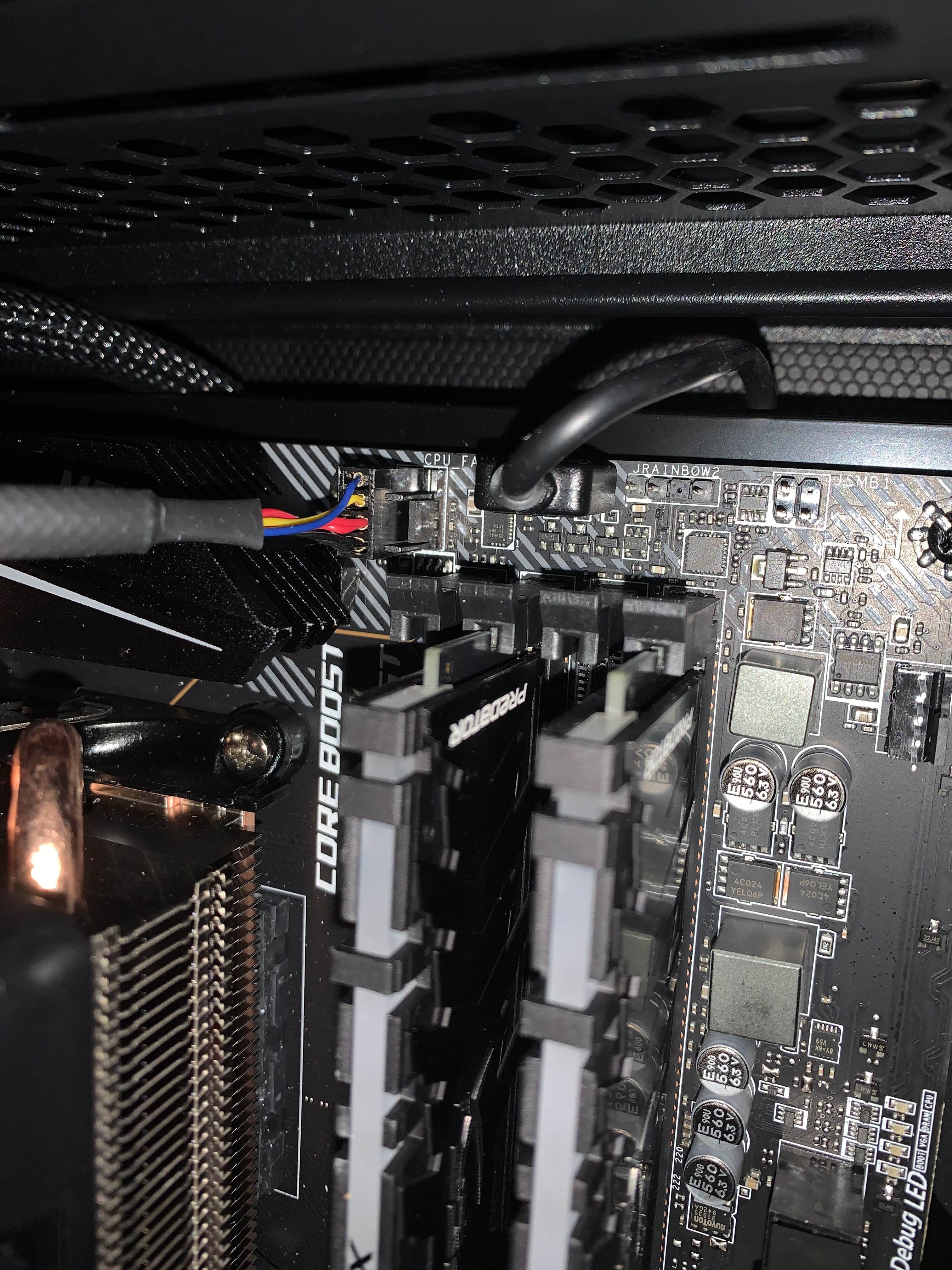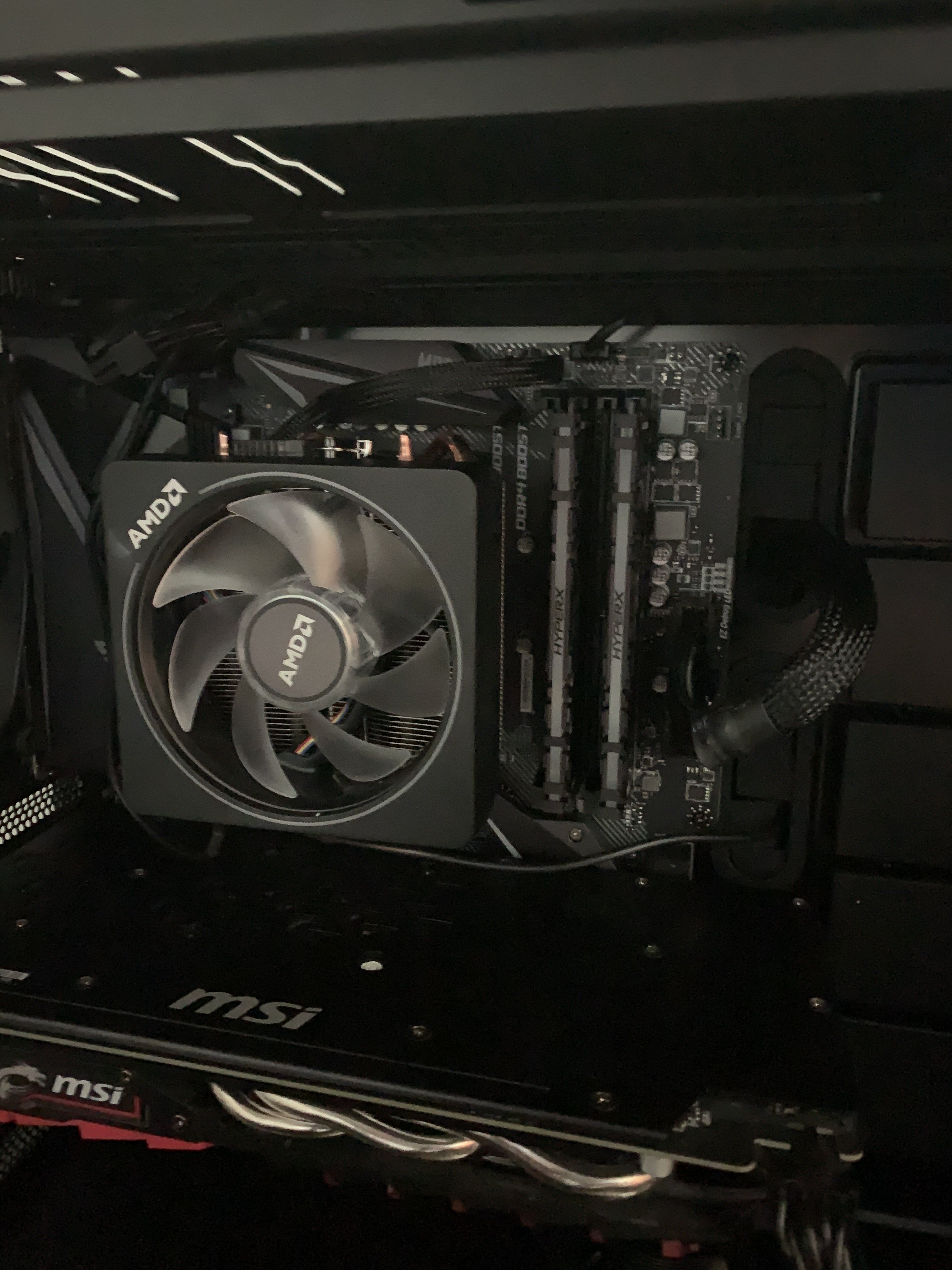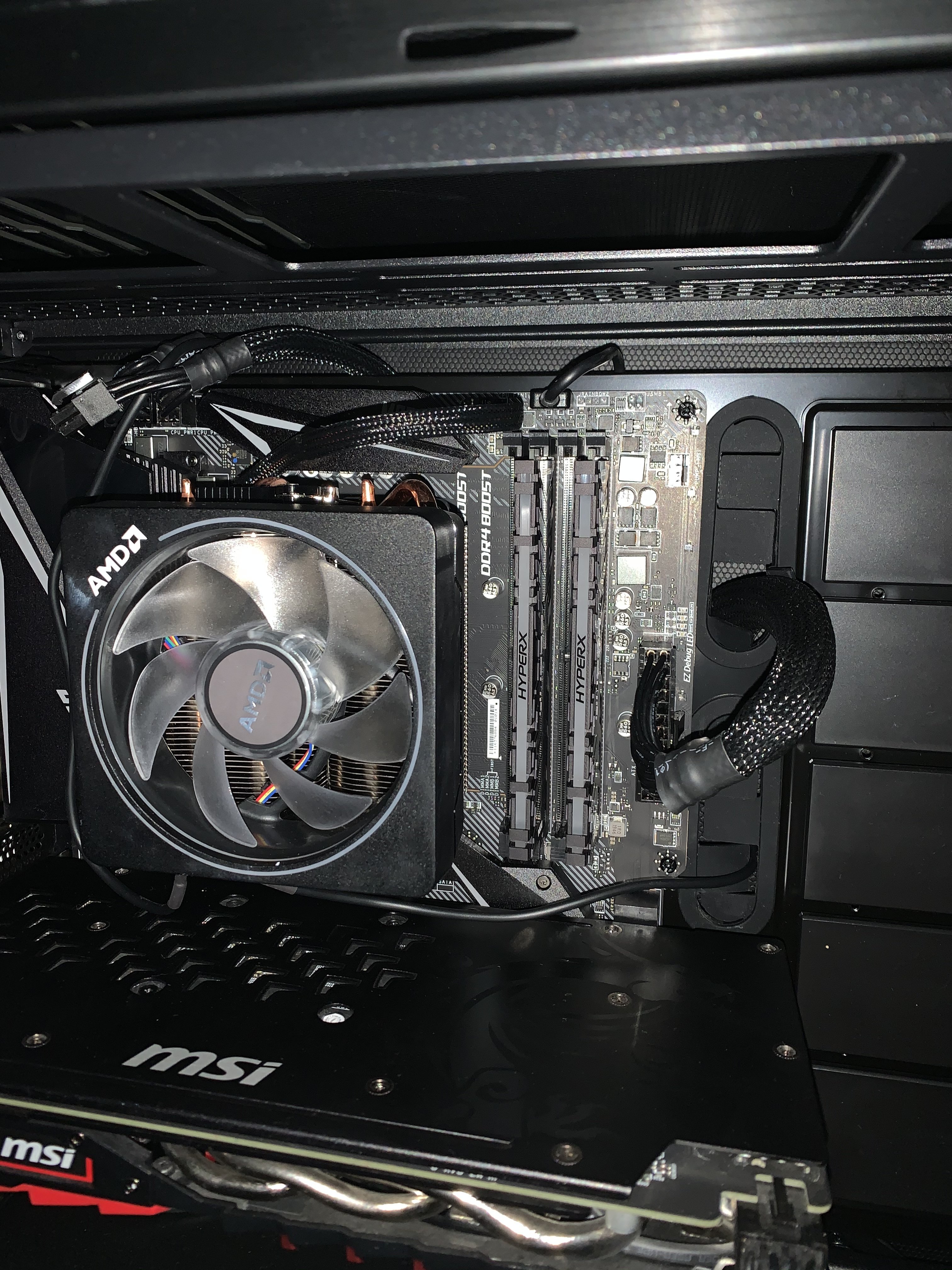 Und auch der zweite Punkt ist richtig, auf dr Grafikkarte liegen die RGB Kabel von AMD auf.