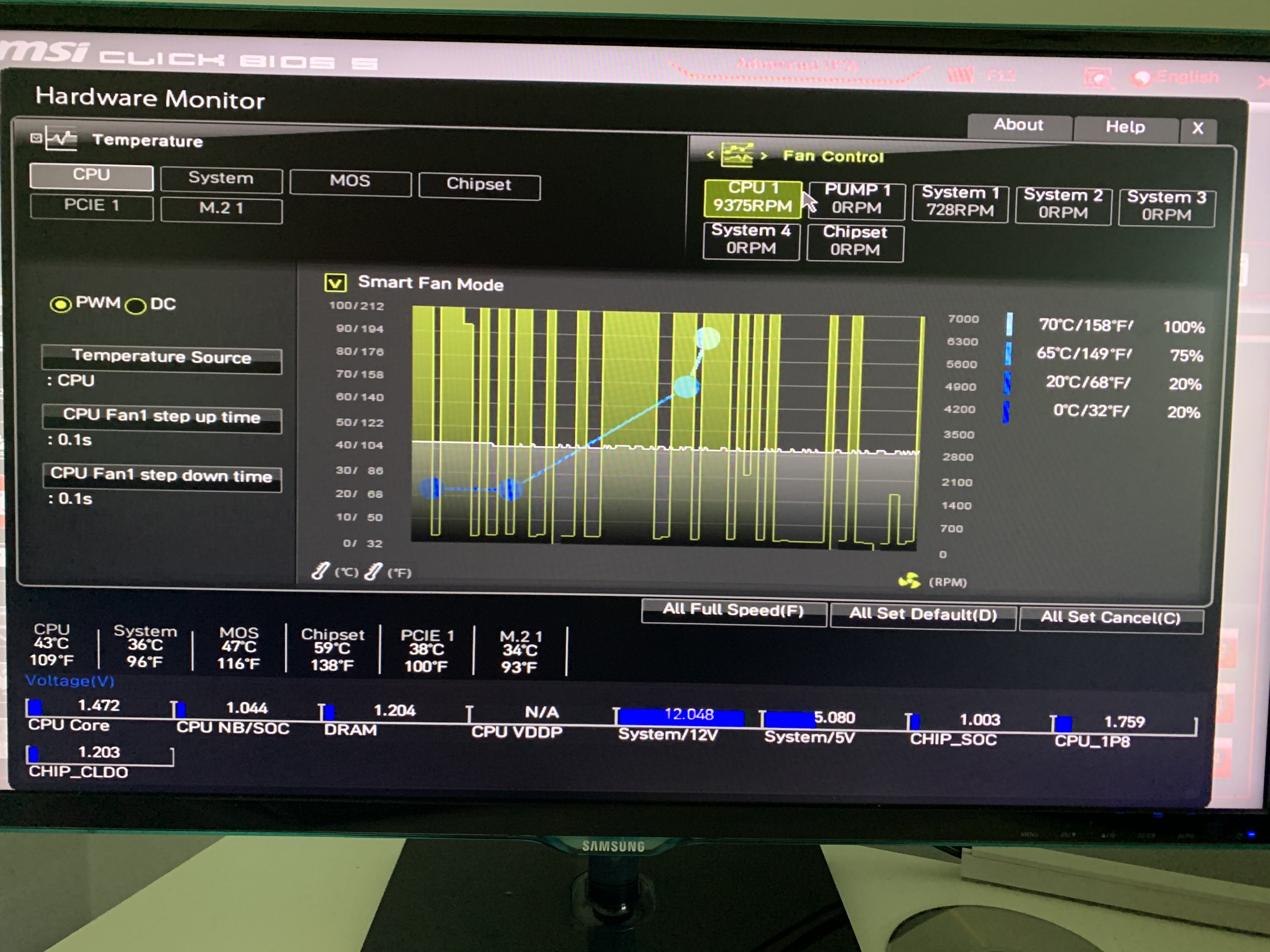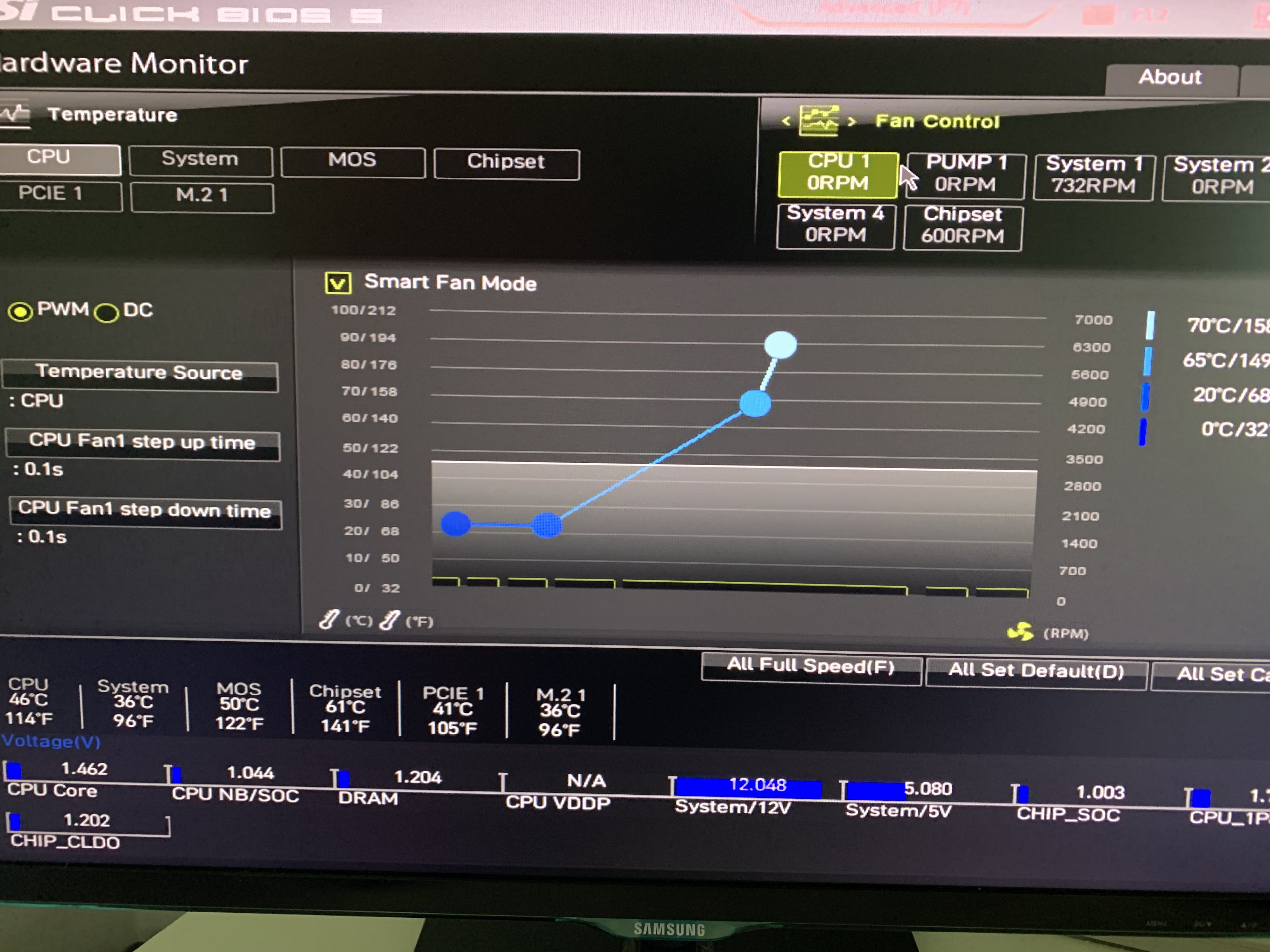 Edit2: Wenn ich auf "All Full Speed" drücke drehen alle Lüfter hoch (System 1 und Chipset), nur der CPU1 nicht. Dieser dümpelt weiter bei 170 bis 250 RPM.