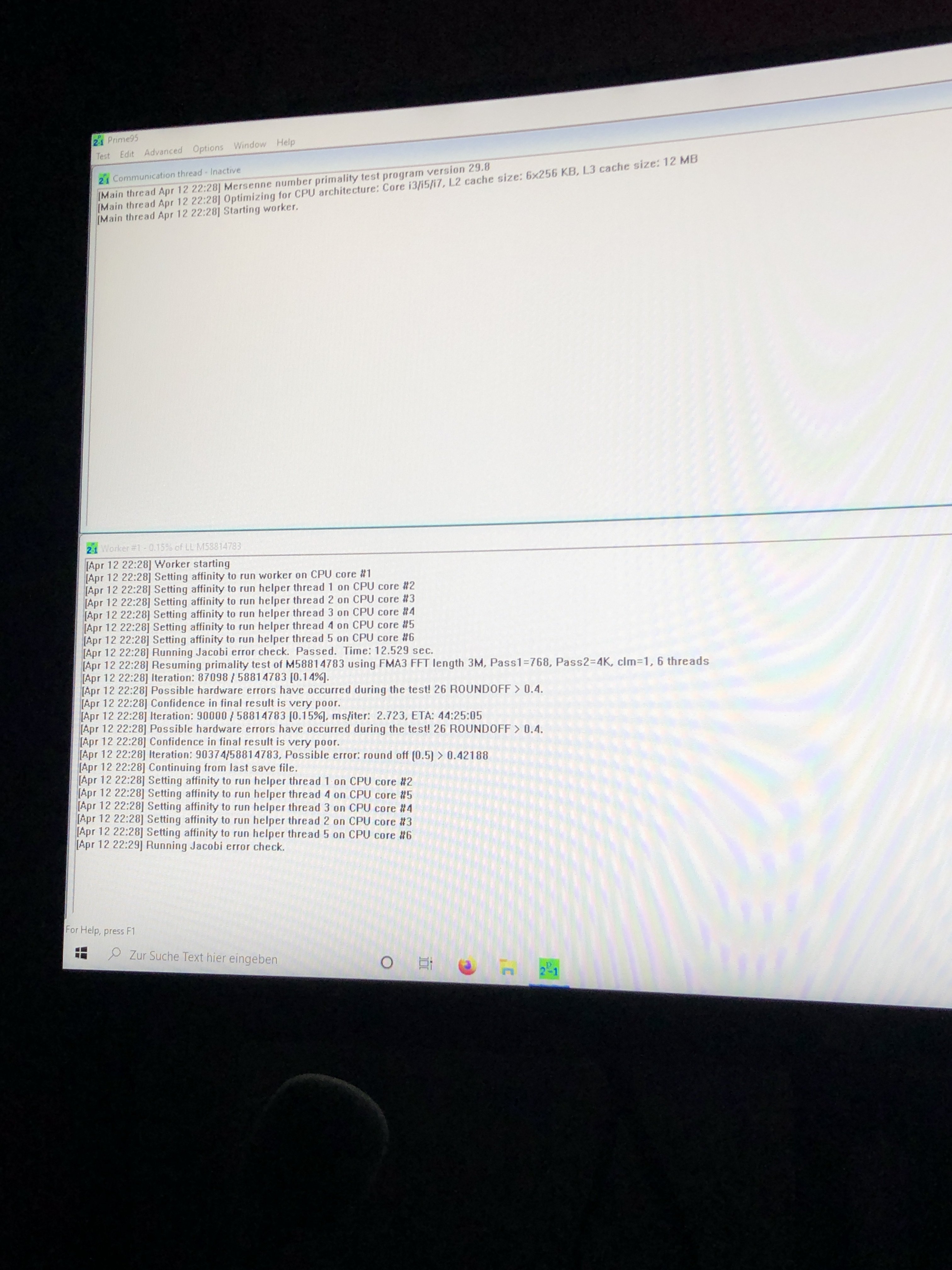 Jetzt kam das als ich Prime 95 gestartet hab nach 5 Minuten.Benni1990 schrieb:ein versuch ist es wert aufjedenfall eben solange bis er instabil wird dann testest du deine letzte stabile vcore und machst wieder prime und spiele wenn er dann nicht mehr abstürzen tut ist er stabil