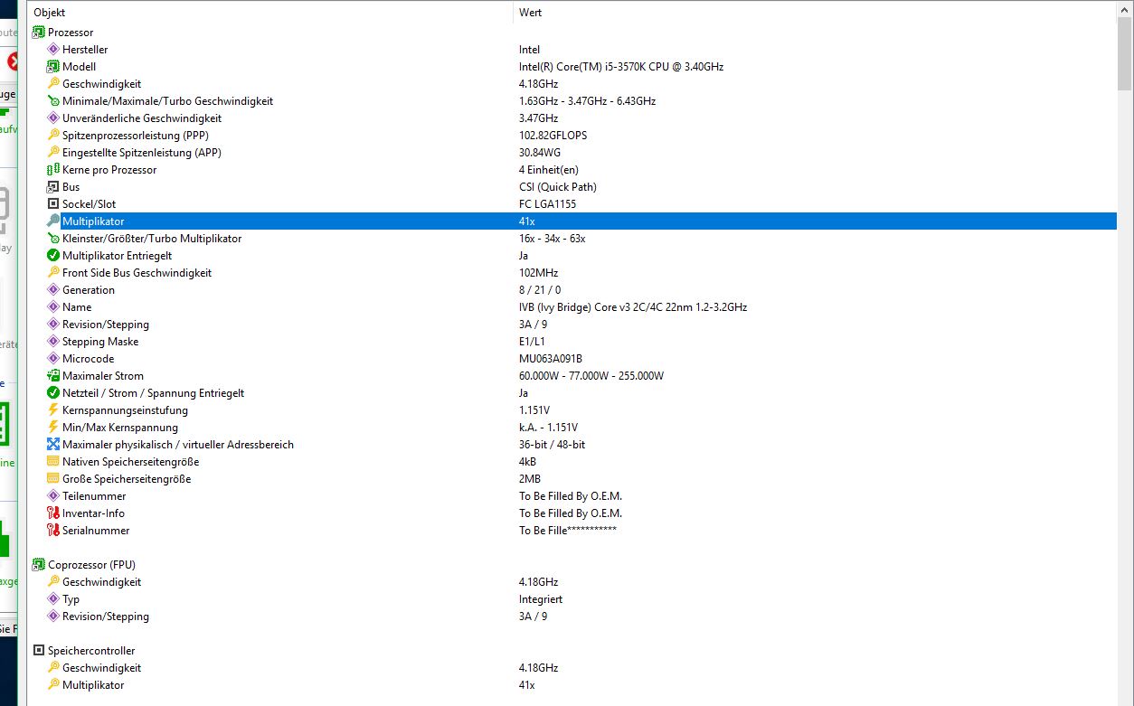CPU-z wird das Gleiche sagen, was relevant ist, und das ist einmal der Multi und der Takt von 102.