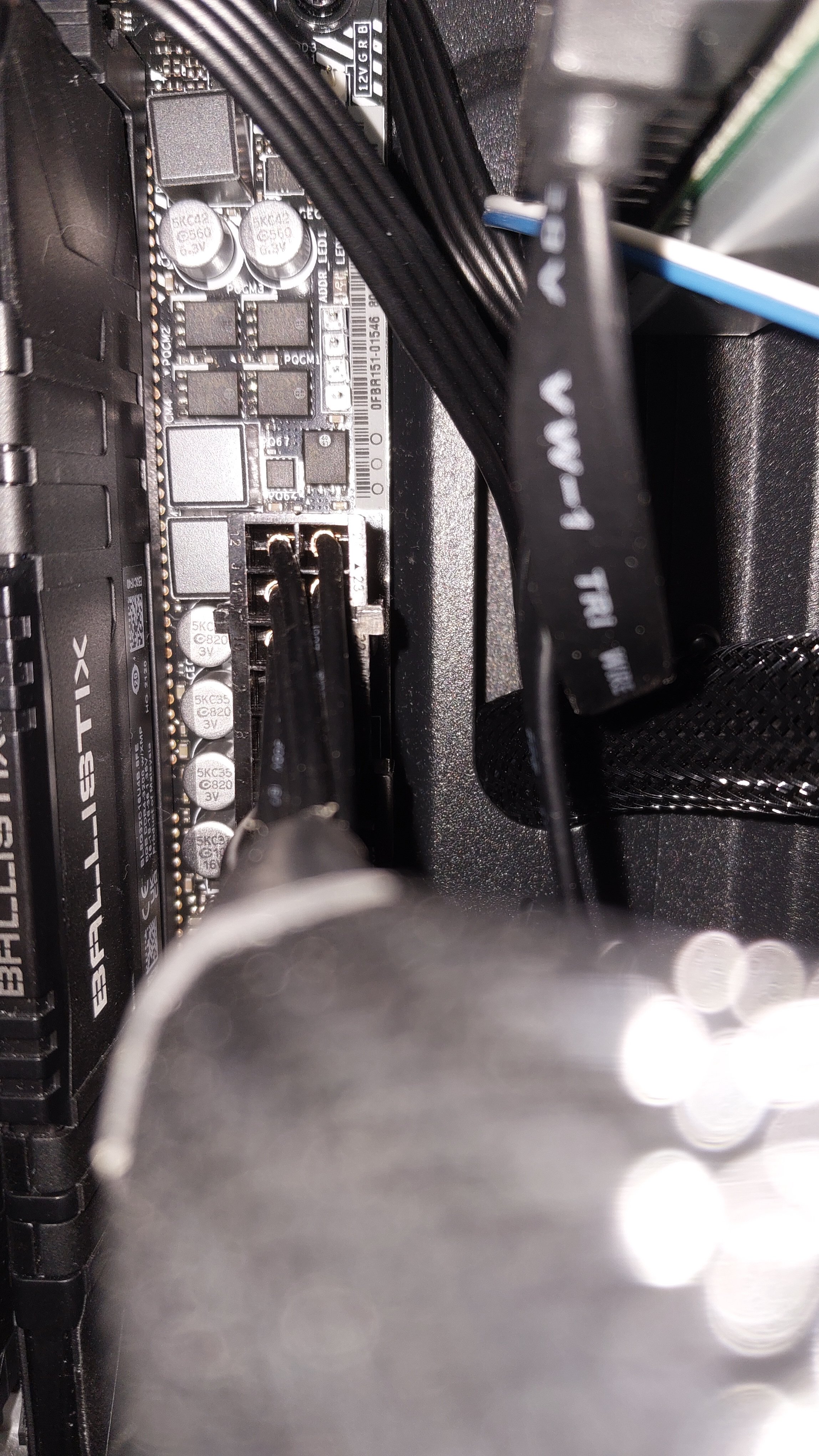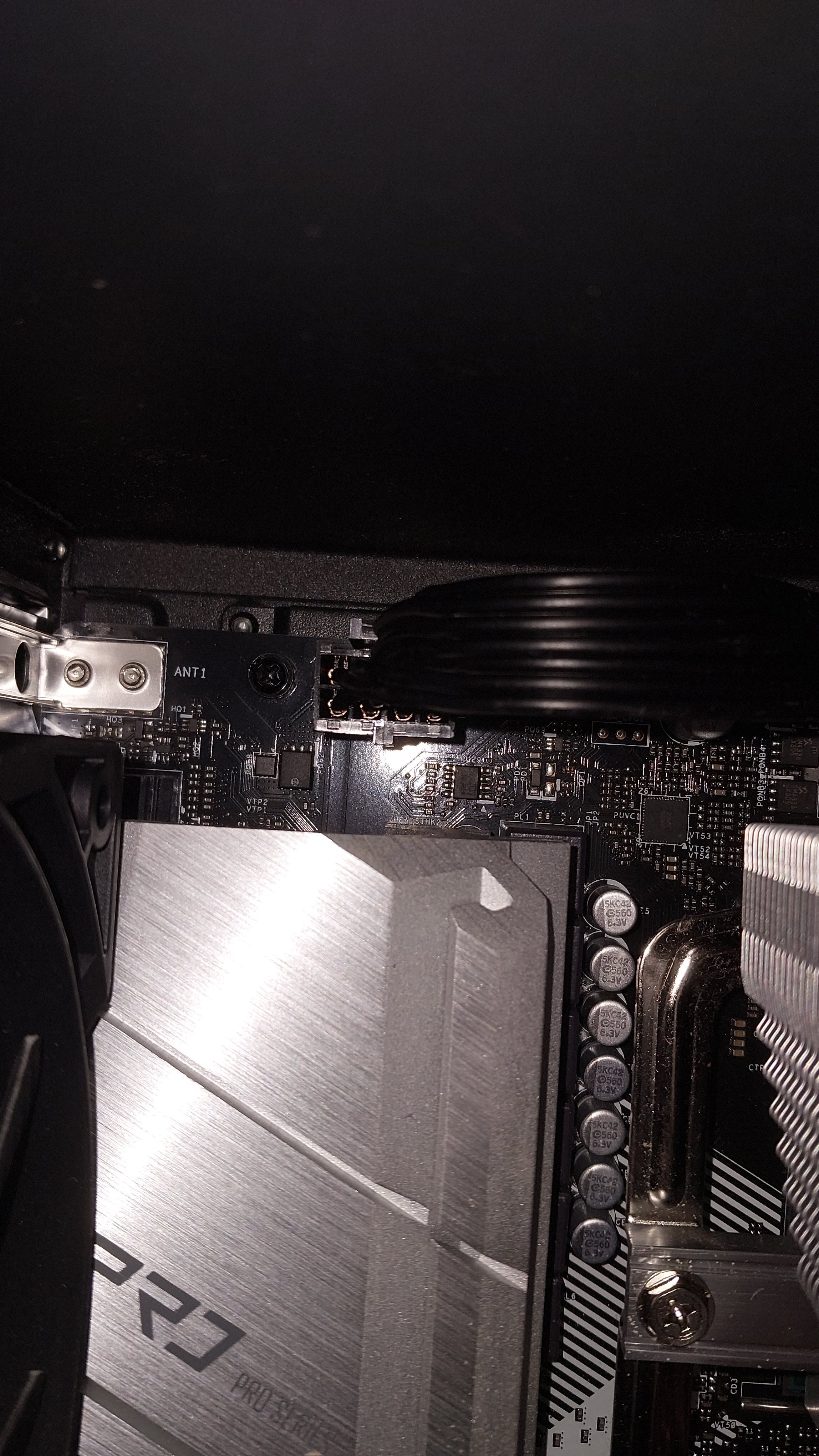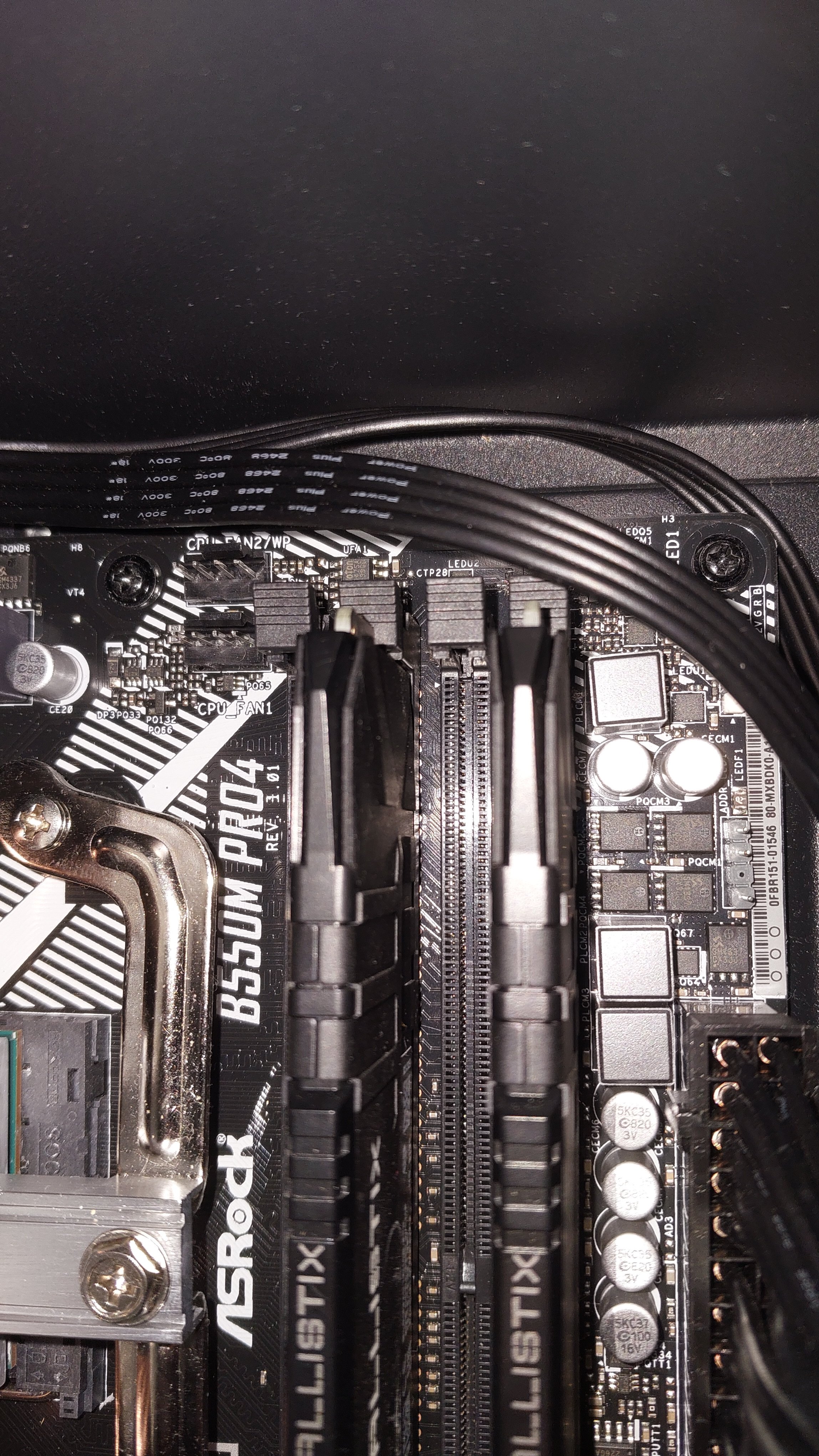 Als ich den PC danach starten wollte, bekam ich jedoch kein Bild. Es leuchten durchgängig sowohl die CPU als auch die DRAM LED auf dem Mainboard rot. Alle Lüfter außer der Grafikkarte drehen, allerdings leuchtet die RGB Beleuchtung der Grafikkarte.