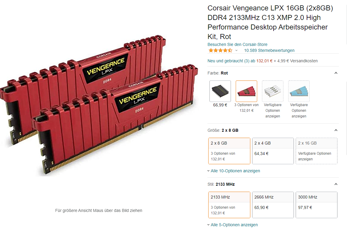 - Arbeitsspeicher (RAM): 16GB Corsair Vengance DDR4 2133Mhz