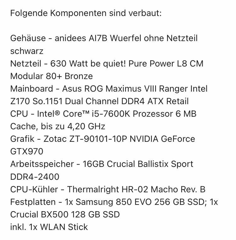 Ich habe euch unten noch ein paar Screenshots von meinen Komponenten reingepackt, falls etwas Relevantes fehlen sollte kann ich das gern nachliefern.