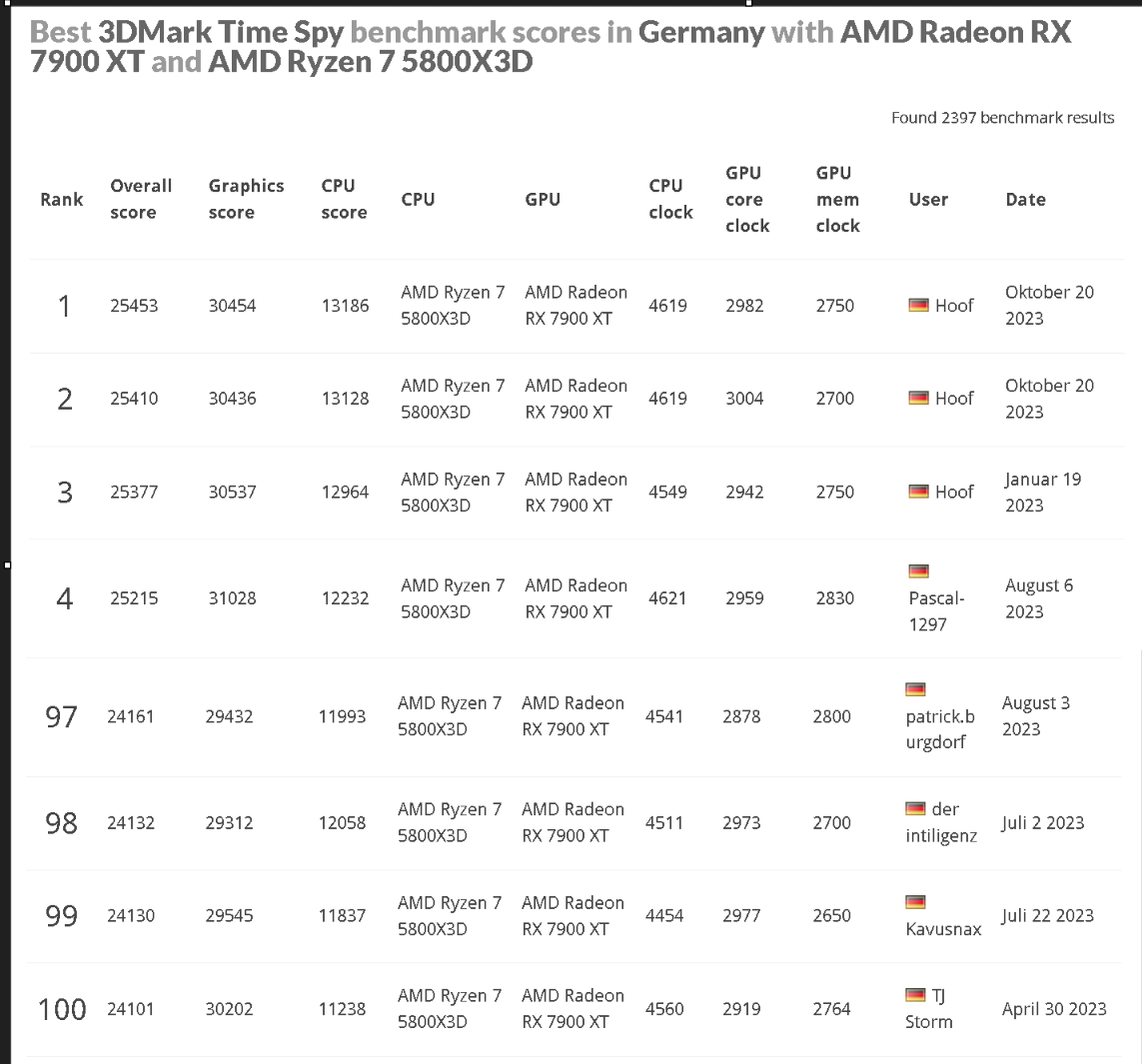 Hier siehst du mal Vergleiche mit anderen Systemen die auch eine RX 7900 XT und einen 5800X3D verbaut haben.