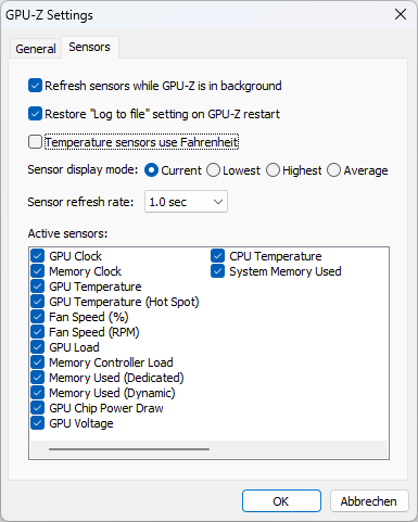 ober rechts auf die drei Striche, da kannst du weitere Sensoren auswählen! Kann aber sein, das es bei AMD nicht geht, schau halt mal.