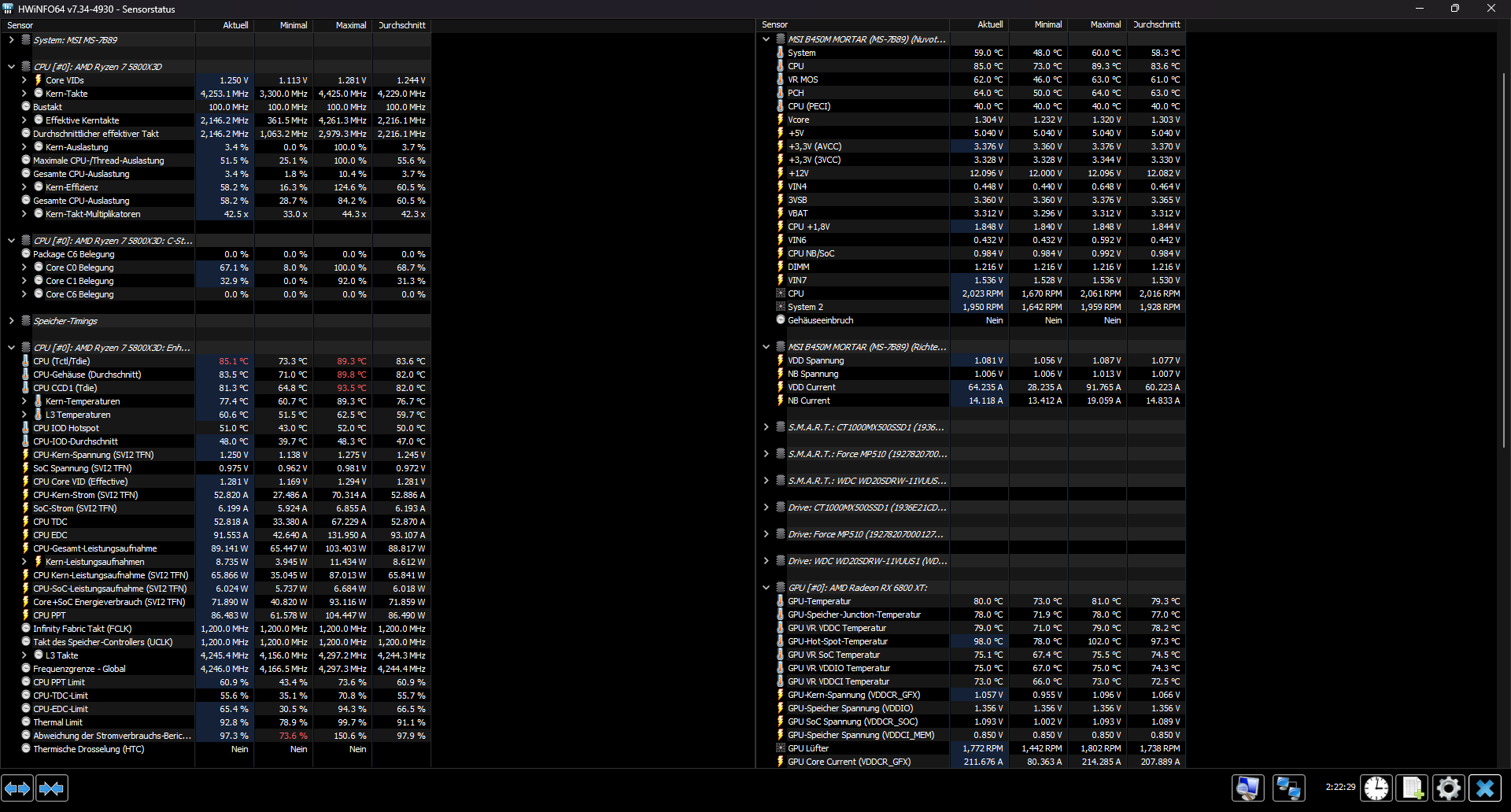 Ich habe HWInfo mit Black Desert Online für 2 Stunden 20 laufen lassen, hier noch mal die temps als Screenshot.