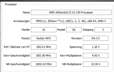 - Prozessor (CPU): Amd Athlon 2 2x 245 Regor 45 Technoology