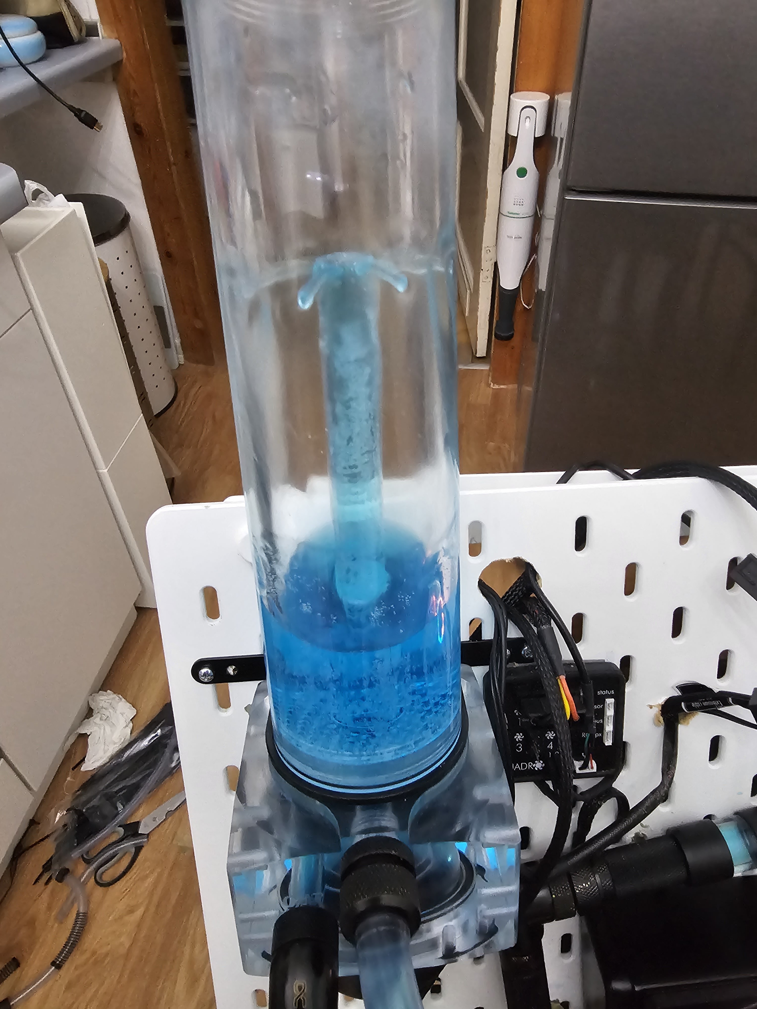 Hast du eigentlich schon probiert deine Pumpen abwechselnd von 0% auf 100% zu stellen? Oft muss sich auch etwas Luft sammeln damit sich diese bewegt, sprich die Luftblase muss eine gewisse Größe haben. Und wenn die Pumpen beim Start direkt mit 100% laufen dann hilft das oft beim Entlüften, mir zumindest hat es geholfen.