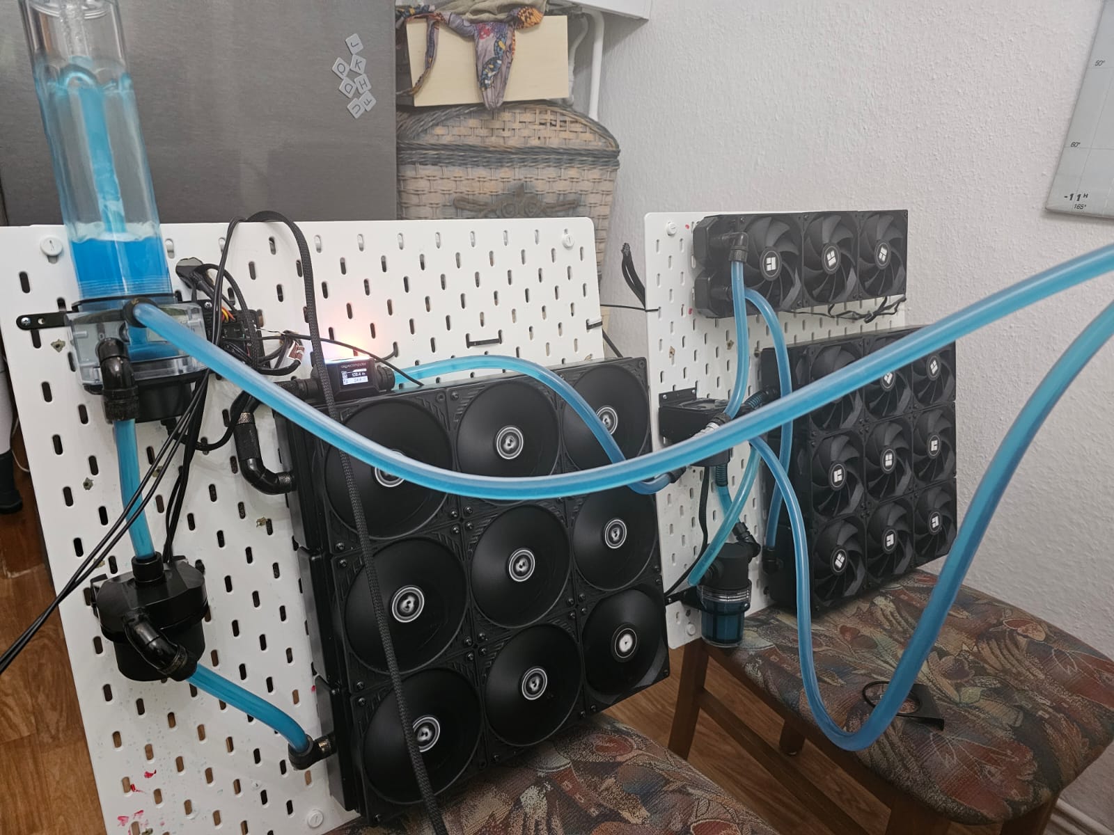 Also es sind 2 Nova's: 1080W pro nova, und ein 360 Radiator (den internen hab ich vom Kreislauf rausgenommen. Also 2560W jetzt noch übrig.