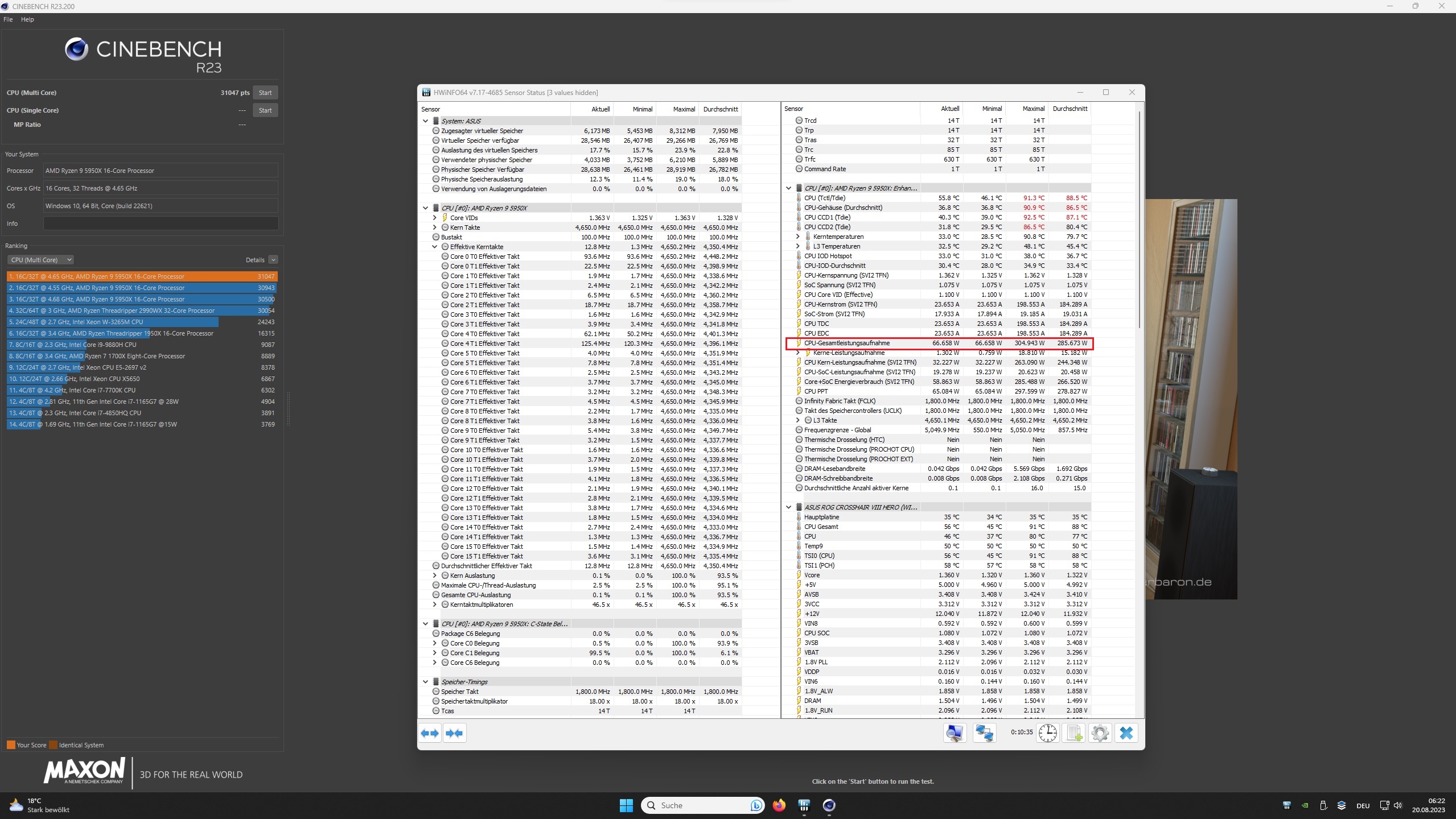 dann starteste r23 lässt es 10 minuten laufen und machst möglichst direkt ein paar sekunden nach dem r23 ein screenshot mit score und den hwinfos damit die durchschnitts TDP mal aktuell ist, die sinkt in jeder sekunde wenn r23 beendet ist.