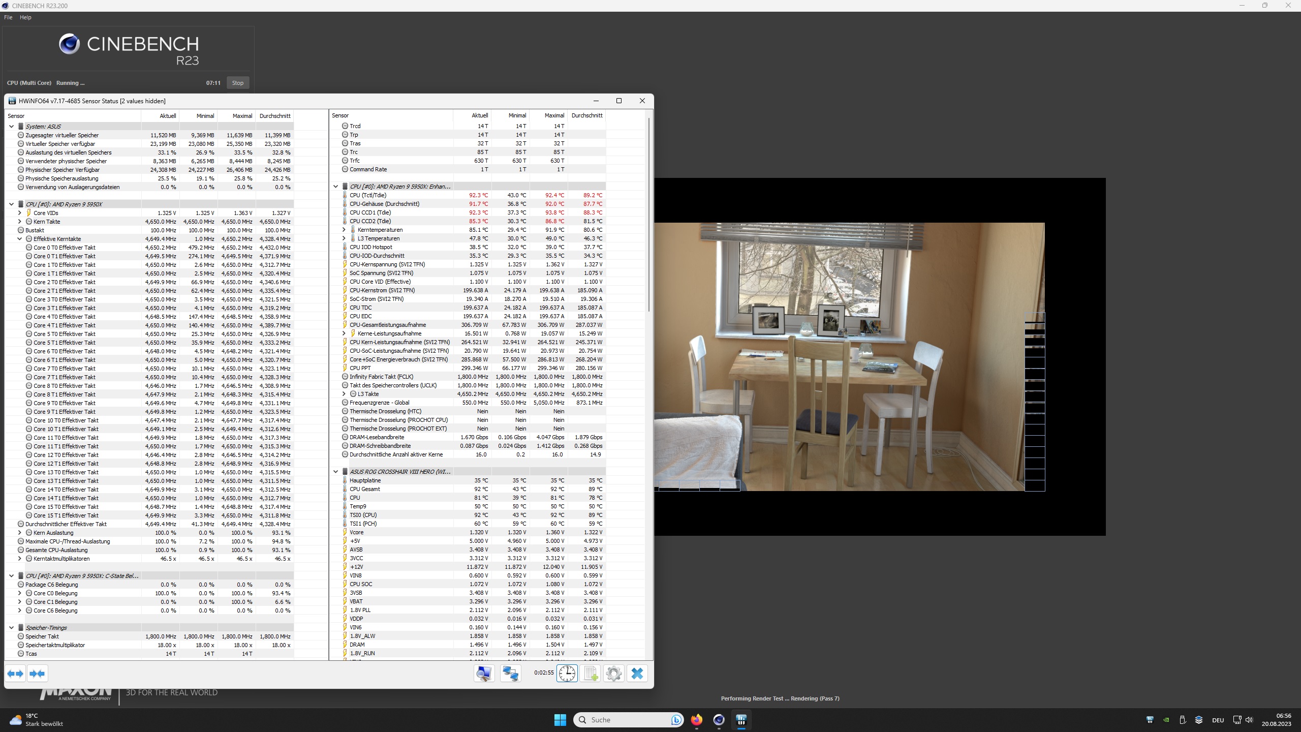 sieht ja jeder nach nicht mal 3 minuten r23 run, max temperatur 93,8 und aktuelle im run CCD1 92,3 im moment vom screenshot