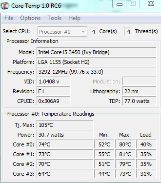 Okay. Ein Messfehler sollte nicht vorliegen? Hat damit jemand Erfahrungen? Programm CoreTemp.