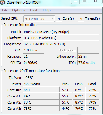 Ja, CoreTemp zeigt ja auch die Max. Werte, das ist ok.