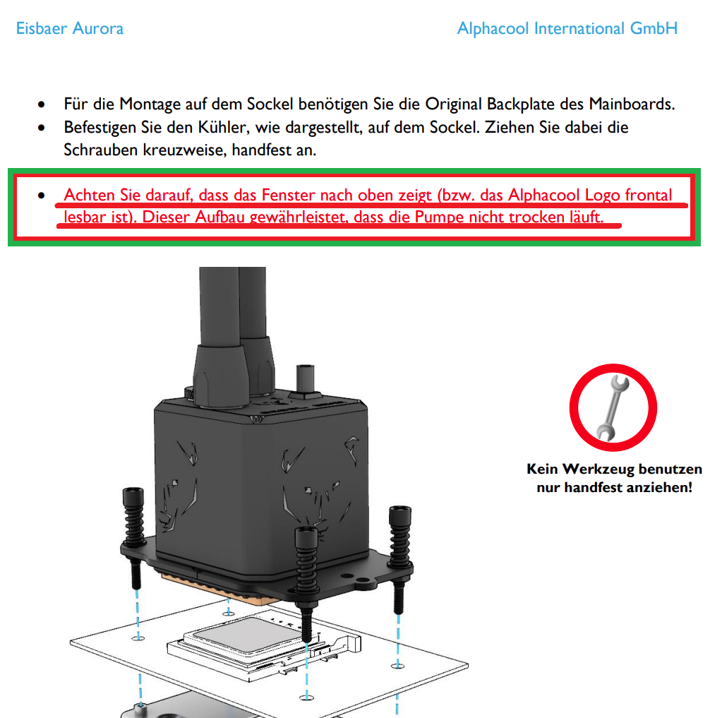 Was mir aufgefallen ist, ist das eine Schraube der CPU-Pumpe etwas locker ist und nicht mehr angezogen werden kann. Ich gehe davon aus, dass es daran liegen könnte und hab mir Ersatzschrauben bestellt, jedoch wollte ich gerne eure Meinung hören.