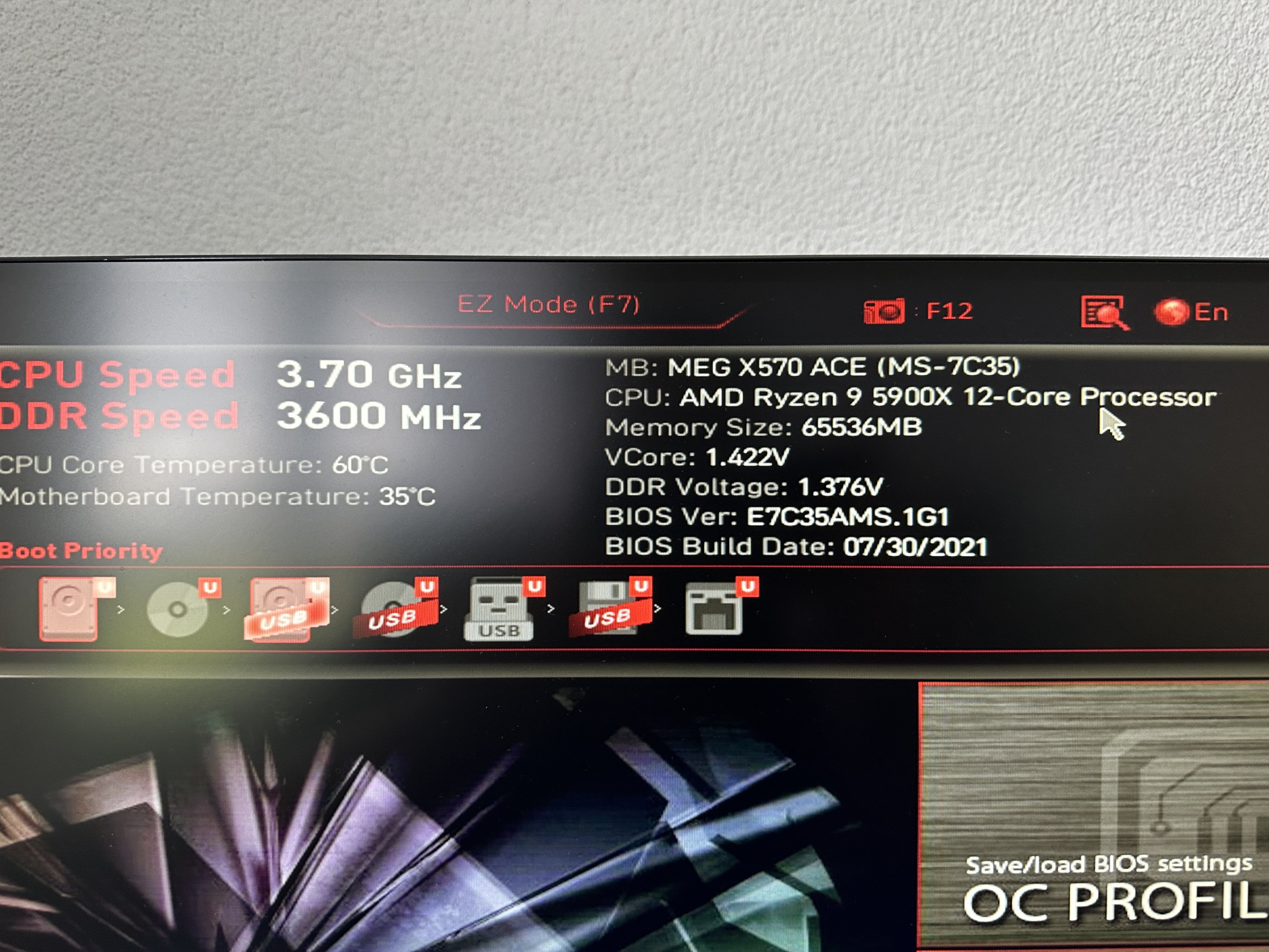 - Mainboard: MSI MEG X570 Ace (AM4, AMD X570, ATX)