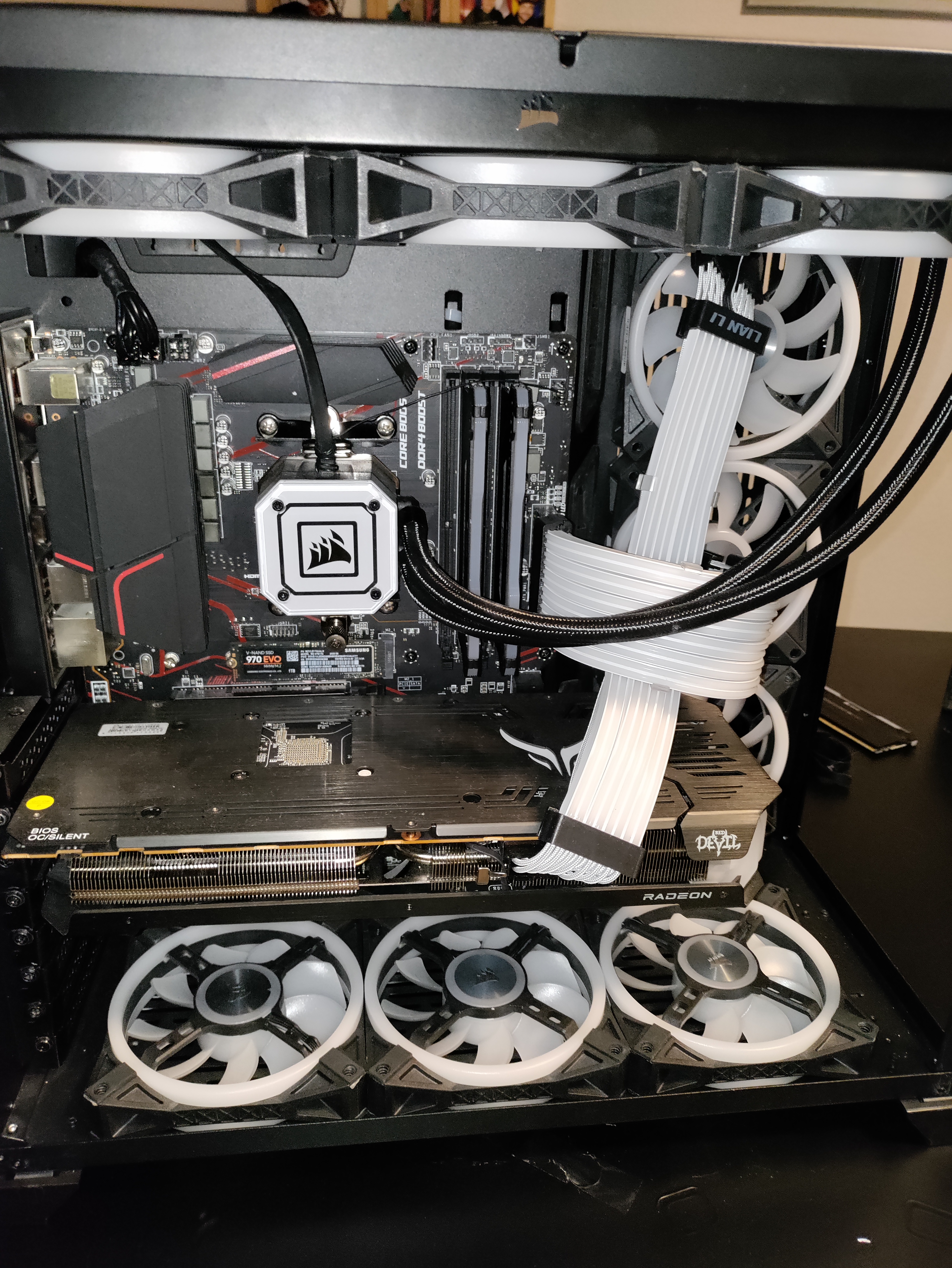 Hallo, danke für euren schnellen Antworten die Pumpe läuft einwandfrei und ist korrekt angeschlossen. Ich hänge Mal ein Bild von meinem PC an wegen des airflows