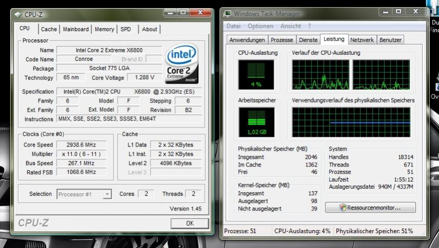Nun zeigt mir CPU-Z immer die vollen 2,93 GHz an. Egal ob idle oder Volllast (siehe Anhang). Was mir auch noch aufgefallen ist ist die Tatsache das man nur einen core aufwählen kann.