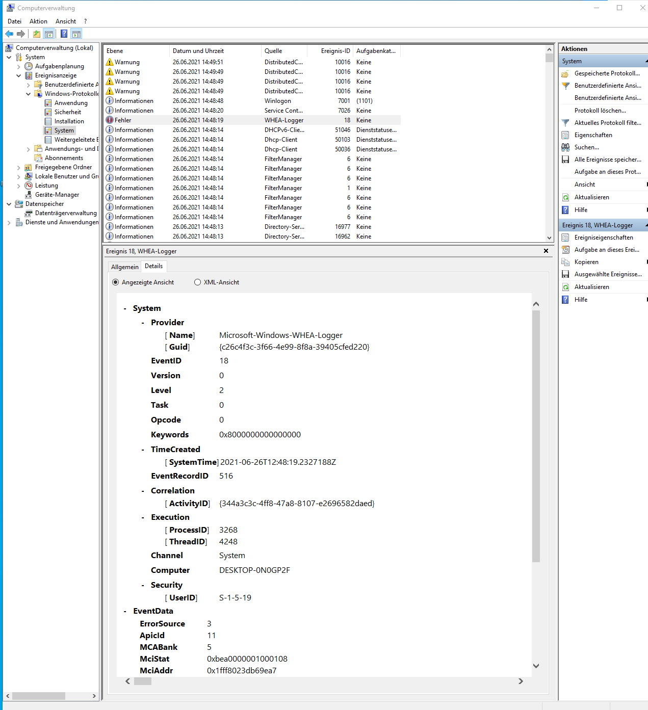 Das der WHEA Error von Windows ausgelöst wird war sowieso unwarscheinlich.