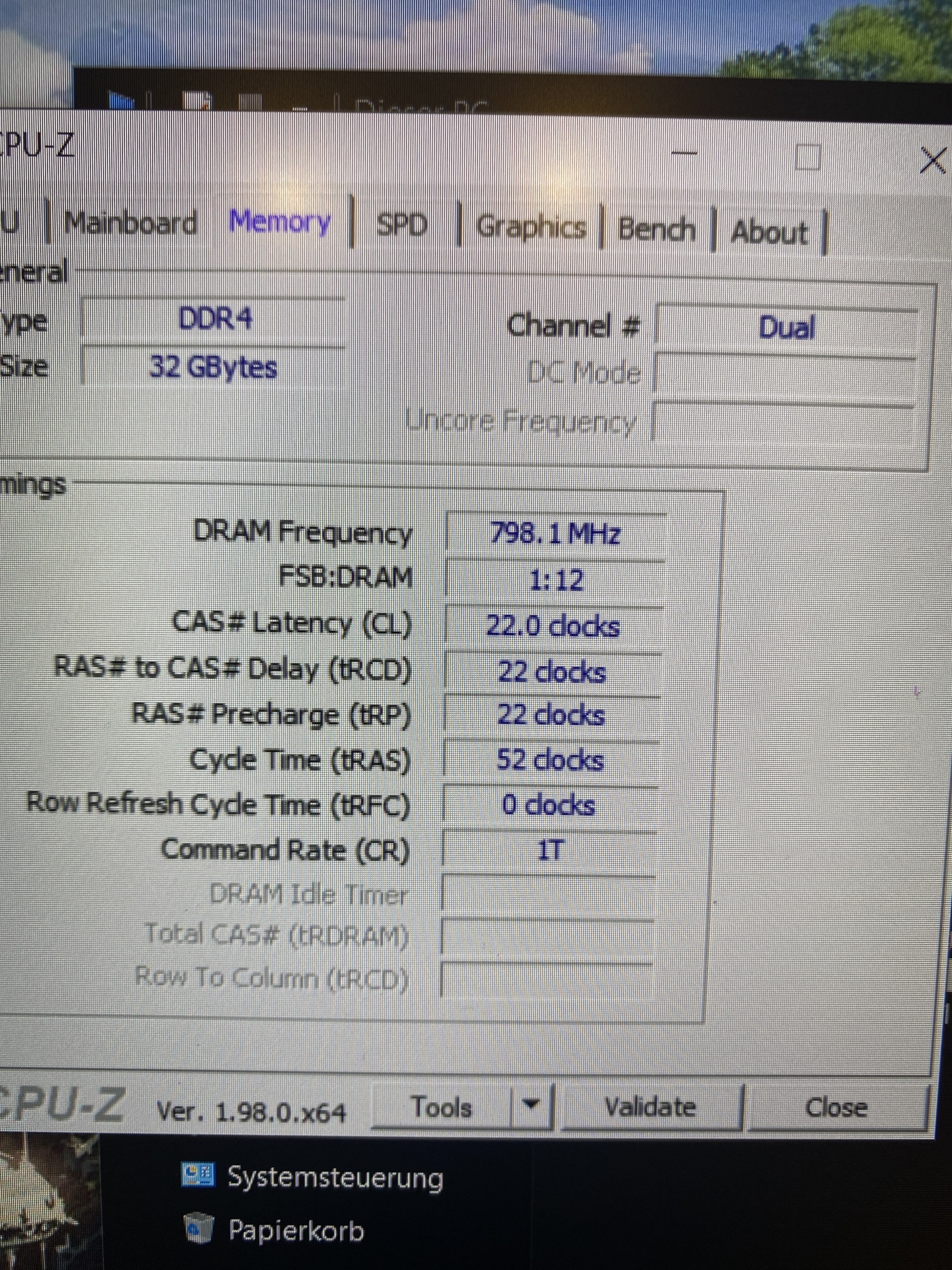 CPU-Z zeigt unter memory 798.1mhz an für DRAM frequency bei einer FSB