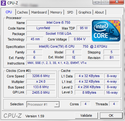 Zum Vergleichen habe ich mich eines Screenshots von einem übertaktetem Core i5-750 bedient, den ich hier im Forum gefunden habe.