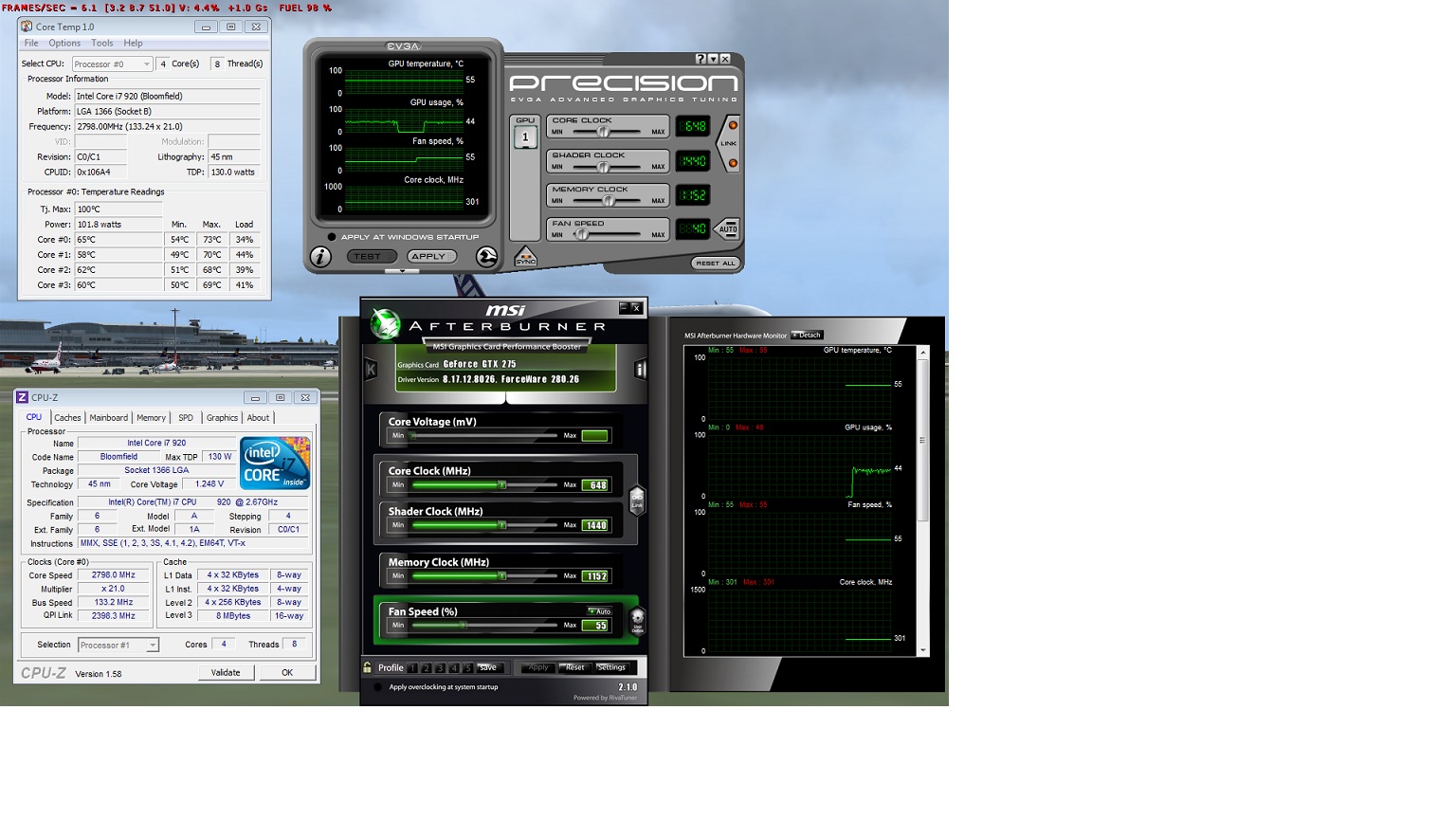 ja, das will ich gerade mal testen. Nur habe ich Probleme mit dem Englischen, was die Programme "Afterburner" und "EVGA" betrifft. Was muss ich da machen? Ich habne mal einen sreenshot angefügt (bei laufendem FlugSim, und trotzdem nur max 7.0 fps). Danke für Eure Hilfe.
