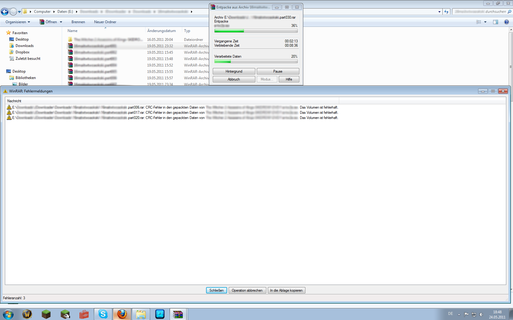 seit einiger Zeit bekomme ich bei verschiedenen Aktionen vermehrt immer wieder CRC-Fehler von angeblich "beschädigten" Dateien. Hierzu gehören zum einem Fehler beim entpacken großer Archive mit Winrar, und auch Fehler beim Installieren von Software von meinen Festplatten (nicht nur von einer). Die Archive und Installationen wurden nahezu alle auch bereits erfolgreich auf anderen Rechnern verwendet, ohne Probleme.